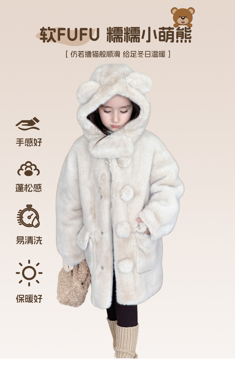 2025 겨울 어린이 모피 코트 밍크 모피 아기 귀여운 곰 모피 따뜻한 소년 소녀 코트스토어 가기