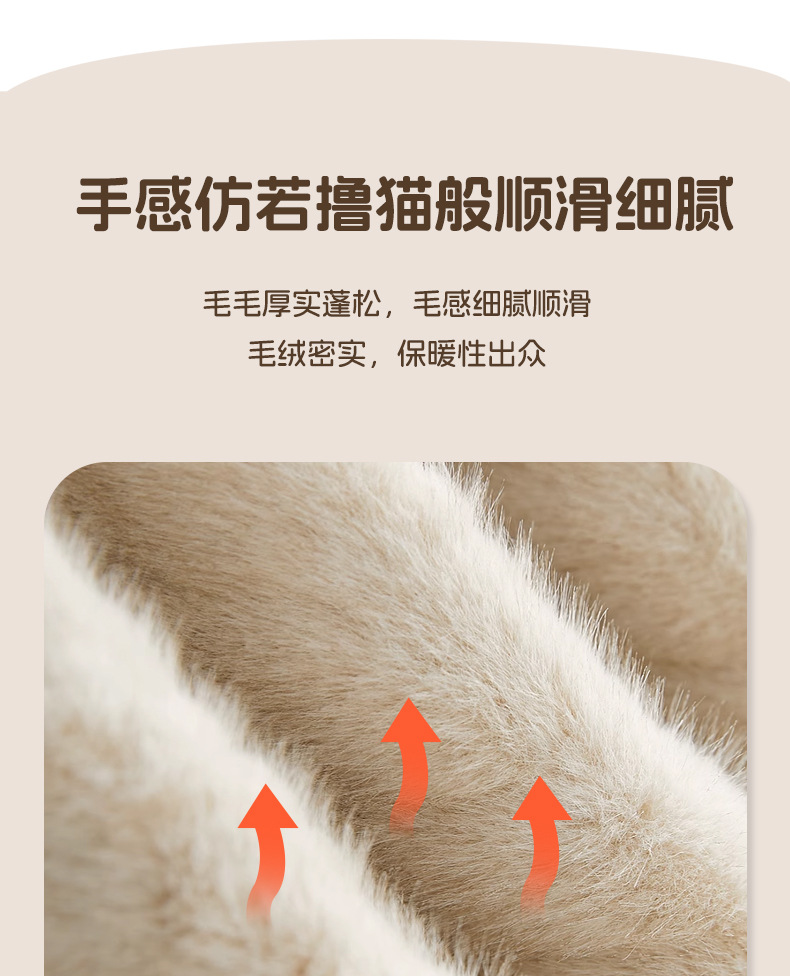 1.金标仿水貂毛材质,而非一般市场货                           2.优异植绒工艺,不易掉毛