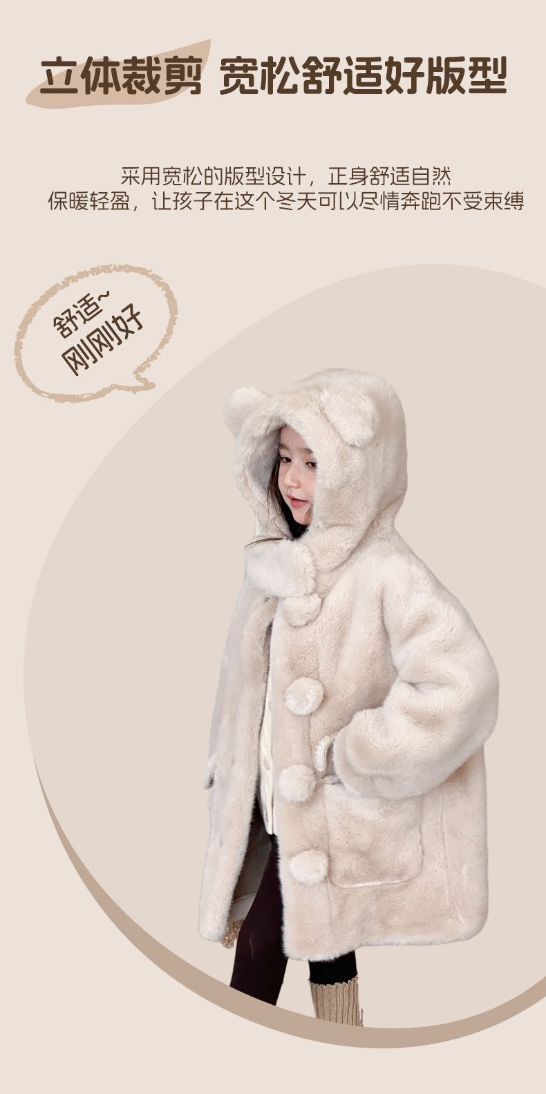 2025 겨울 어린이 모피 코트 밍크 모피 아기 귀여운 곰 모피 따뜻한 소년 소녀 코트