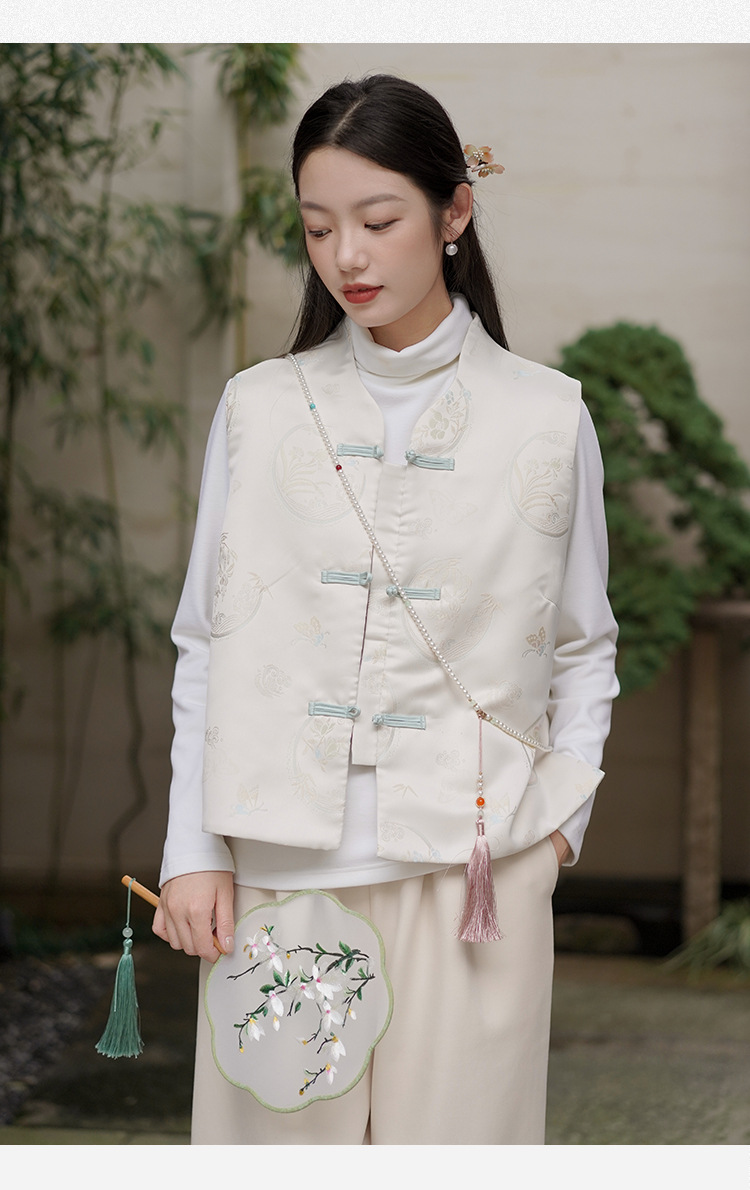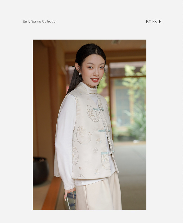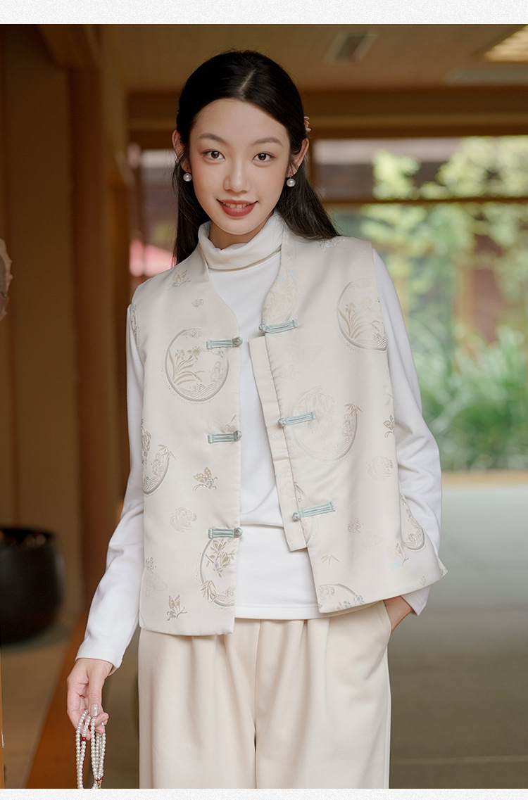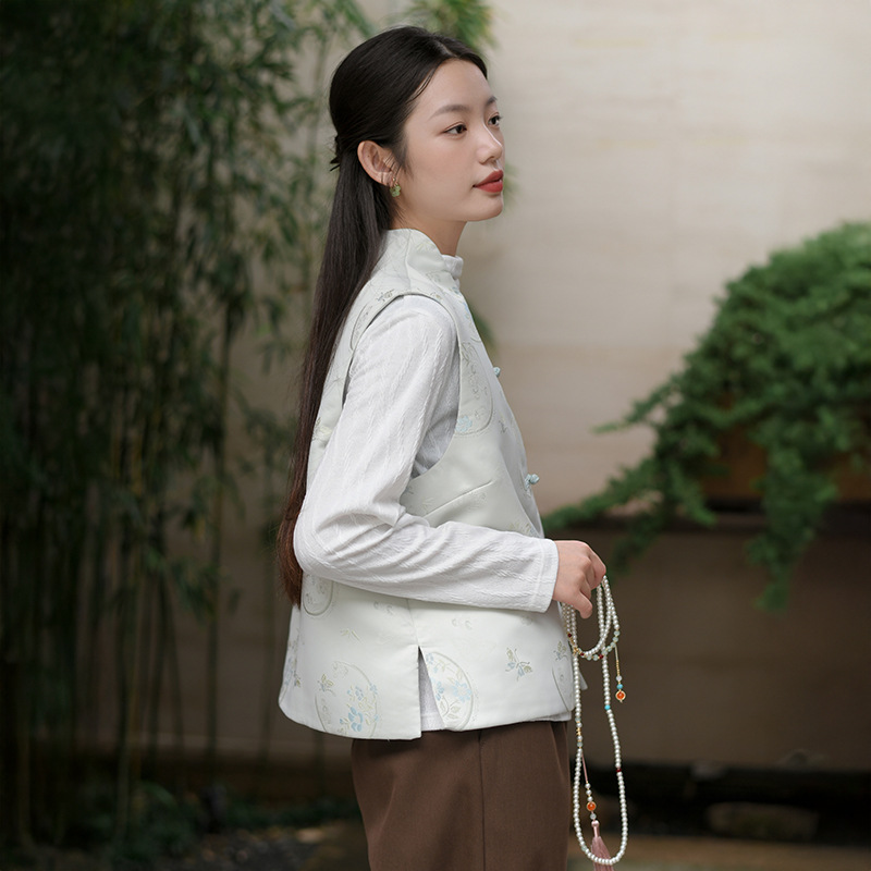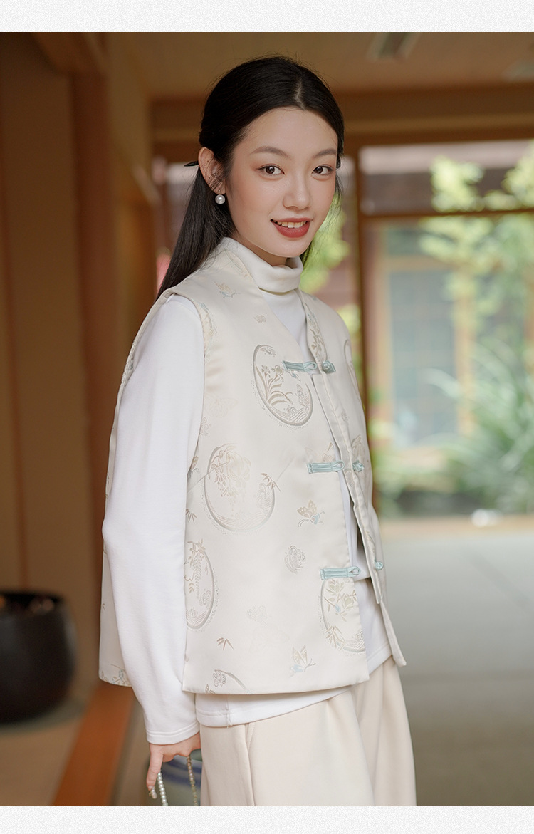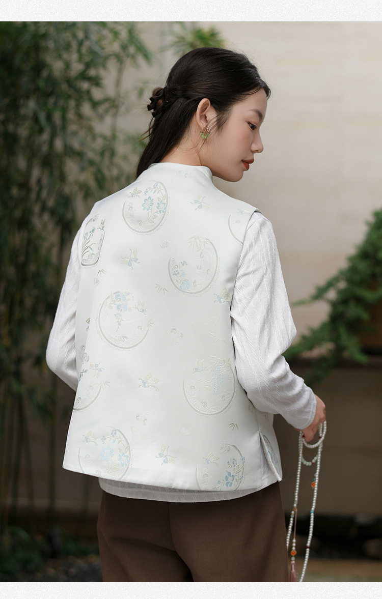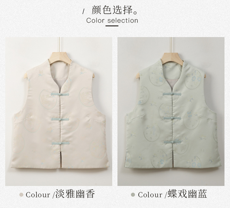 2024 가을과 겨울 새로운 여성 의류 새로운 중국 스타일 면화 조끼 새틴 자카드 노래 브로케이드 빈티지 탑 라이트 국가 스타일 양복 조끼