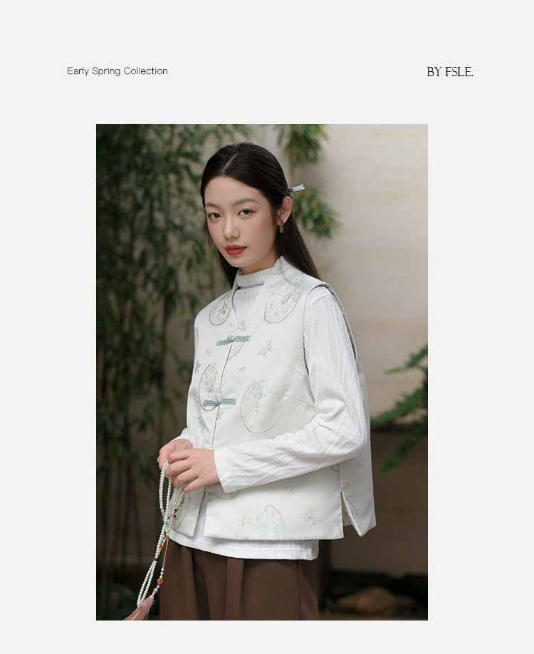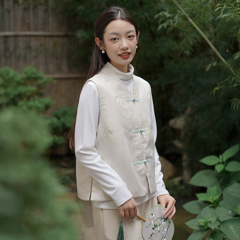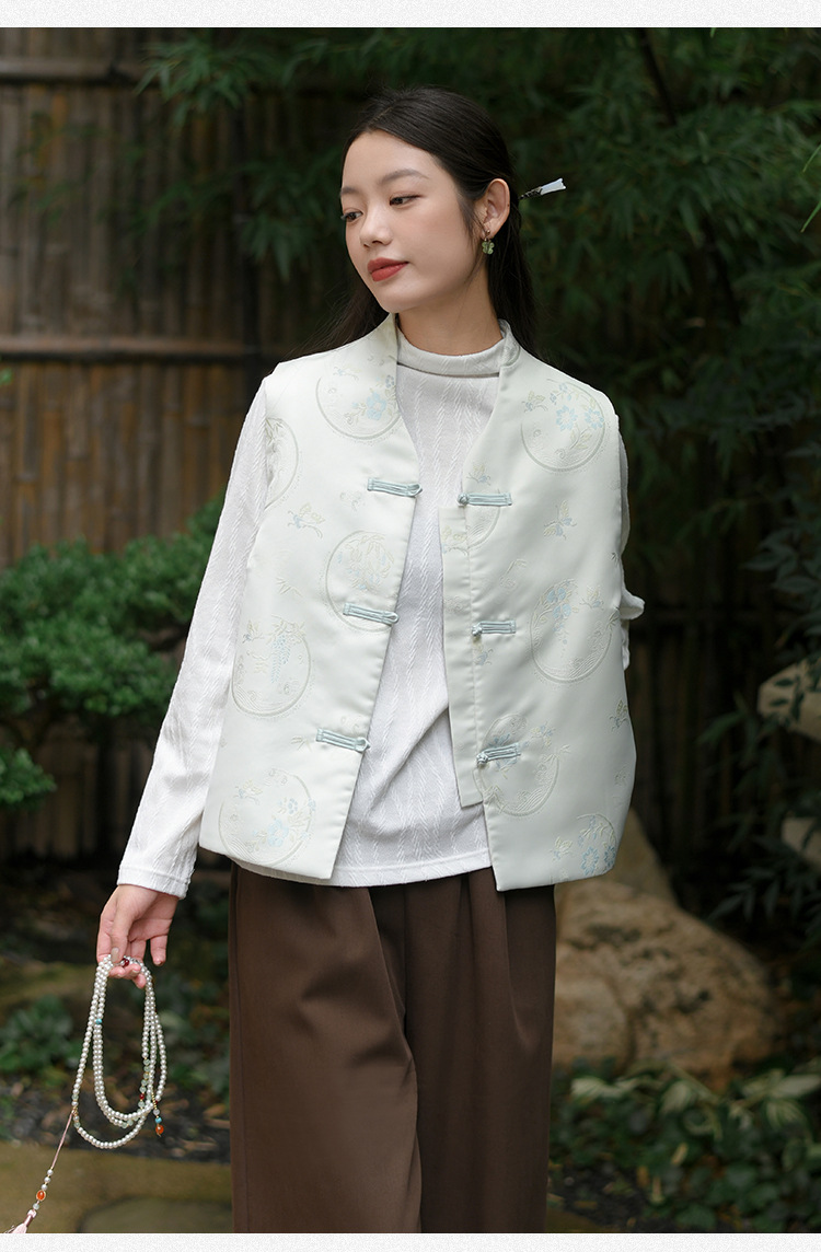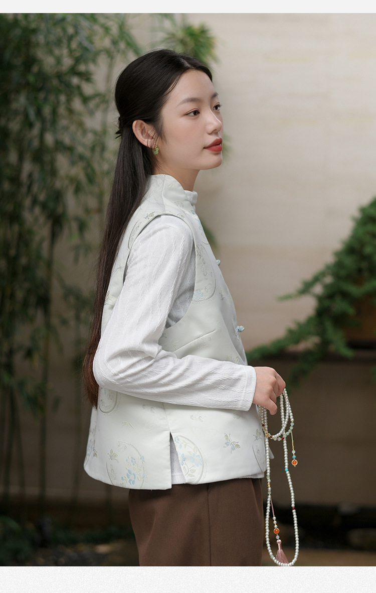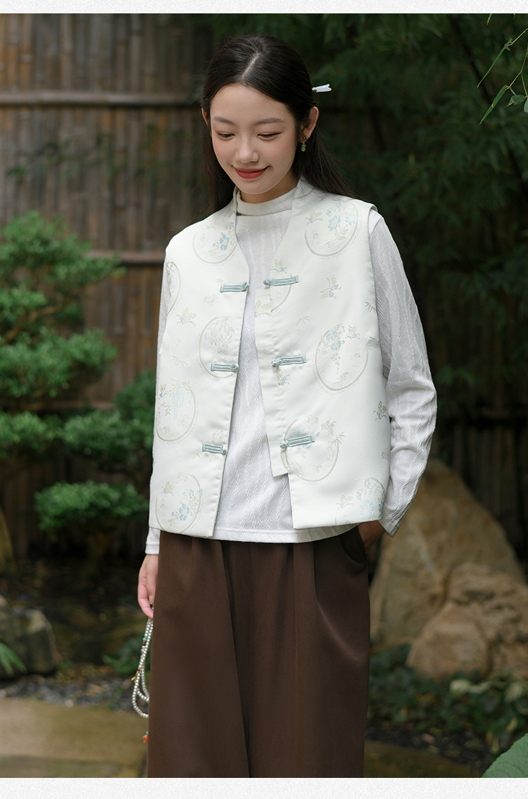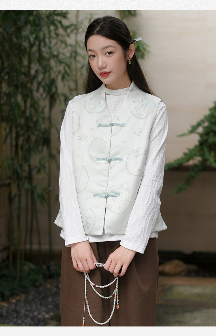 2024 가을과 겨울 새로운 여성 의류 새로운 중국 스타일 면화 조끼 새틴 자카드 노래 브로케이드 빈티지 탑 라이트 국가 스타일 양복 조끼