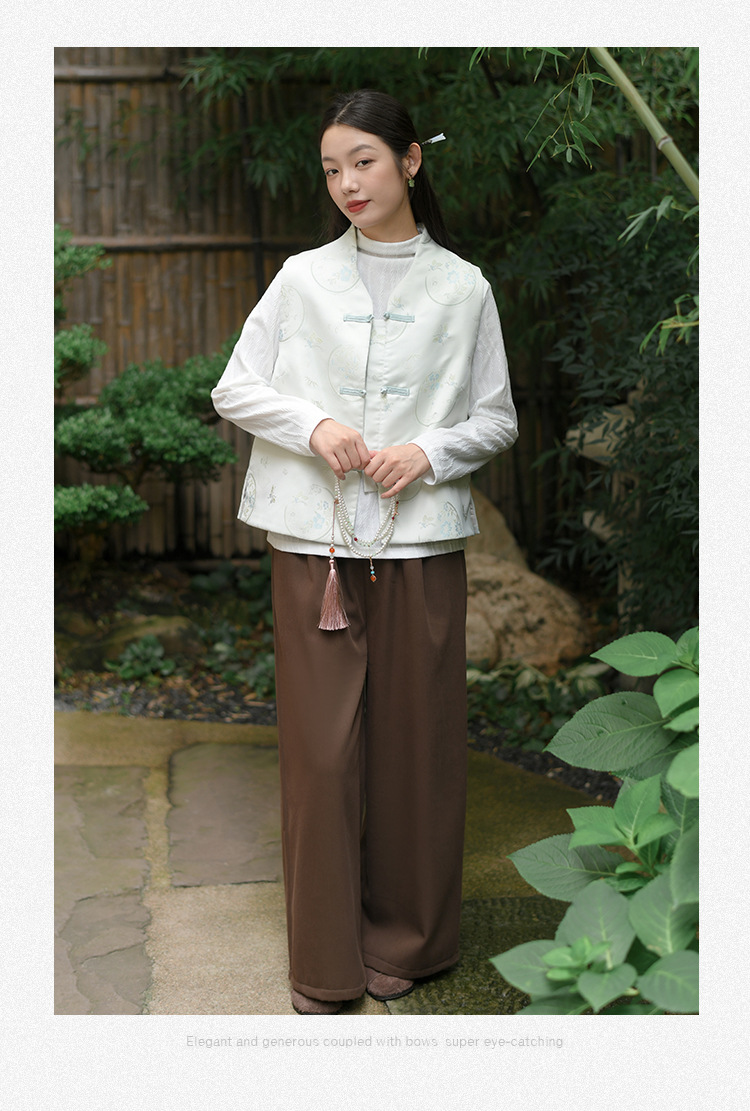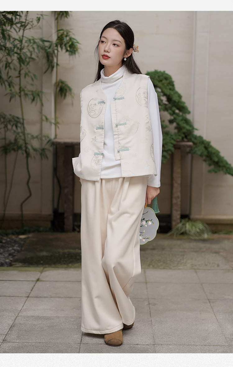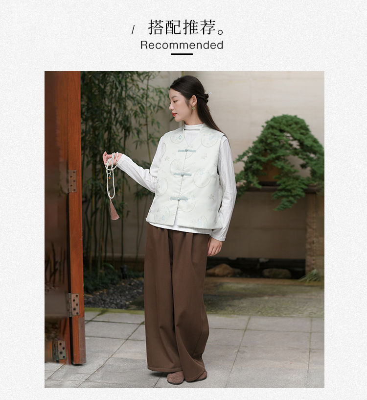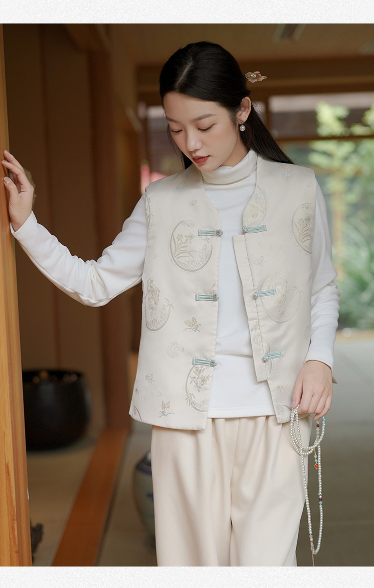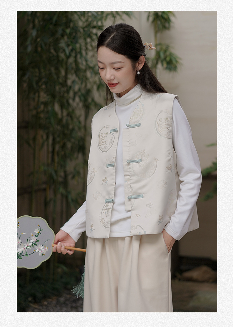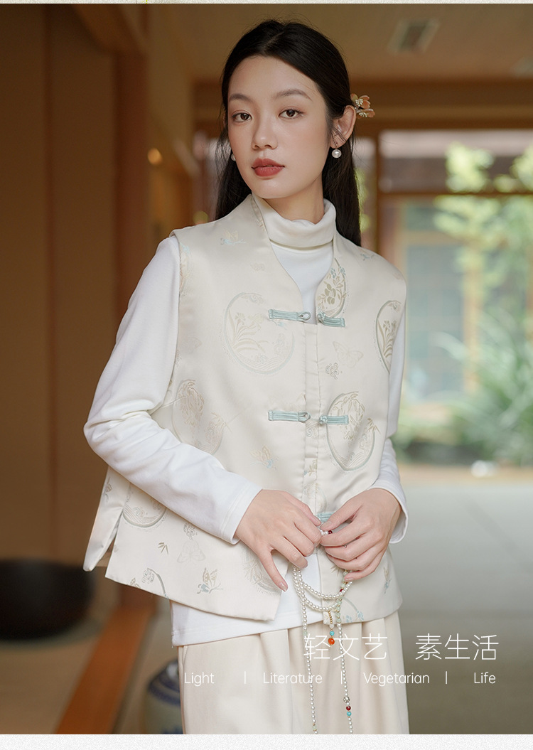 2024 가을과 겨울 새로운 여성 의류 새로운 중국 스타일 면화 조끼 새틴 자카드 노래 브로케이드 빈티지 탑 라이트 국가 스타일 양복 조끼