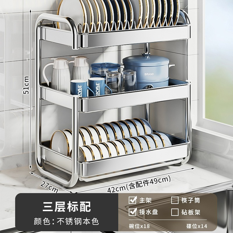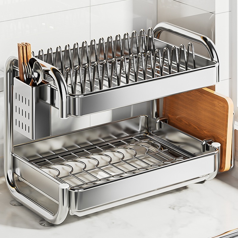국경 간 temu 스테인레스 스틸 접시 저장 랙 배수 접시 및 그릇 주방 보관 랙 다기능 접시 및 그릇 랙