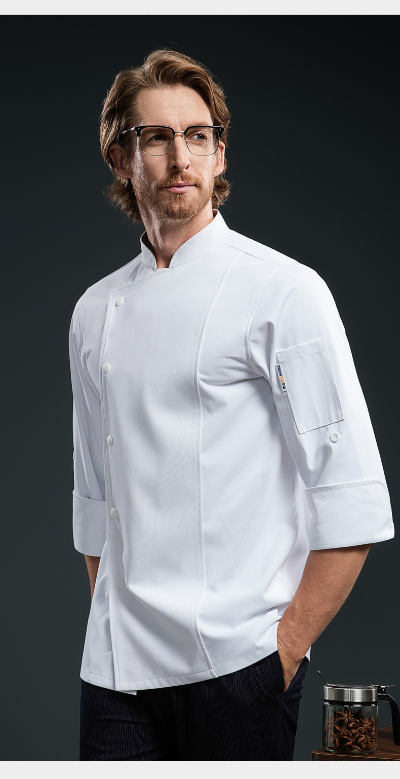 고급 레스토랑 호텔 요리사 작업복 호텔 요리사 요리 마스터 화이트 긴 소매 패션 개인 요리사 서양 음식스토어 가기