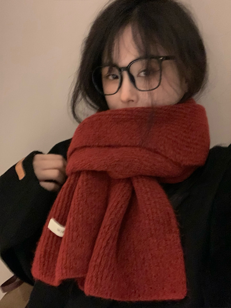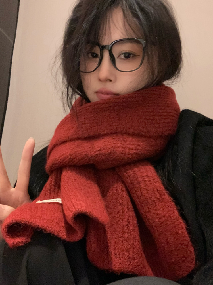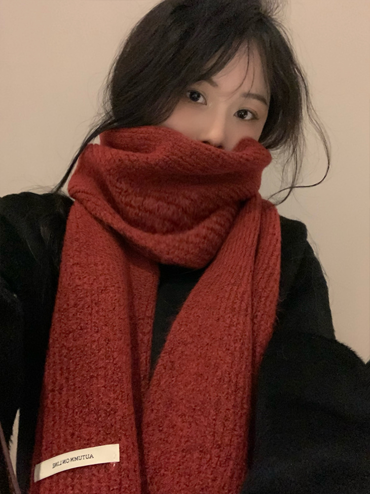 스카프 여자 겨울 2024 새로운 니트 양모 스카프 레드 한국식 올매치 고급 솔리드 컬러 따뜻한 키핑 커플
