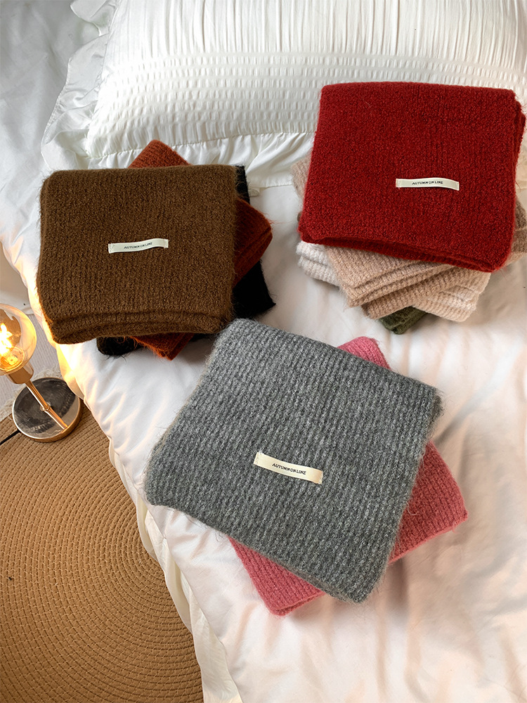 스카프 여자 겨울 2024 새로운 니트 양모 스카프 레드 한국식 올매치 고급 솔리드 컬러 따뜻한 키핑 커플스토어 가기