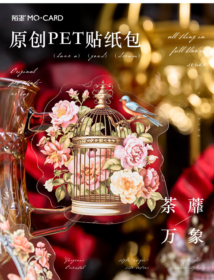 모 모 애완 동물 흰색 잉크 스티커 가방 차 팬 비엔티안 시리즈 복고풍 꽃 손 계정 DIY 기본 장식 재료 스티커스토어 가기