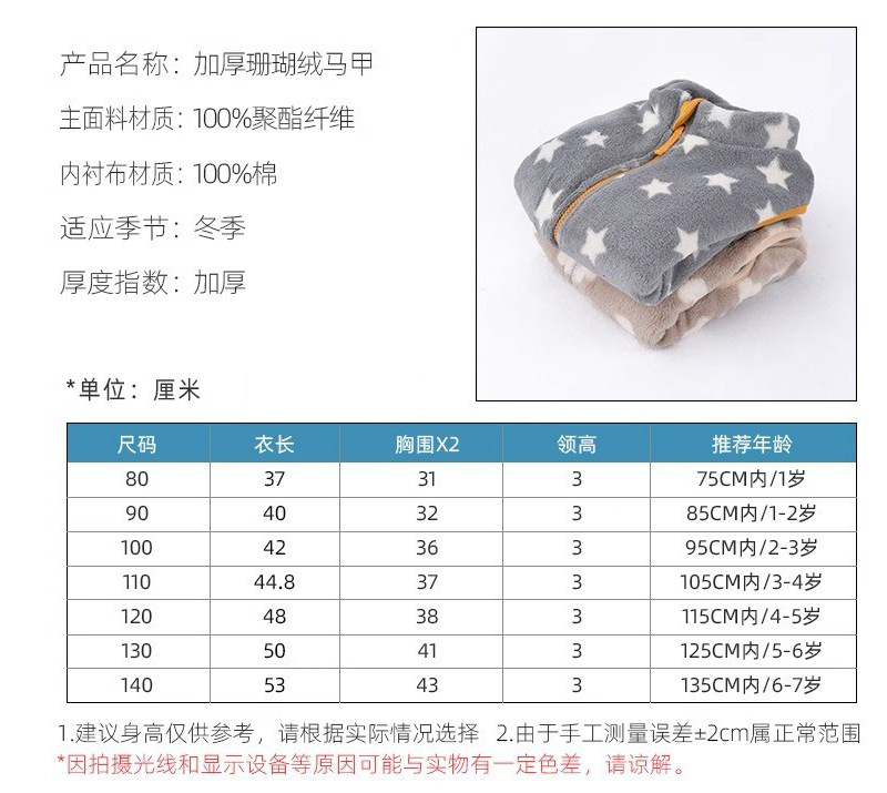 가을과 겨울 소년 소녀 산호 양털 조끼 어린이 기모 양복 조끼 아기 따뜻한 조끼 새로운 아동복