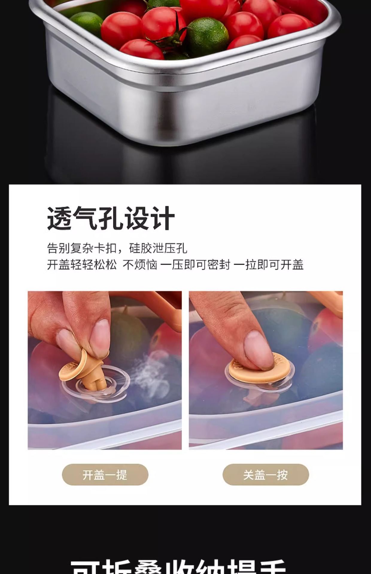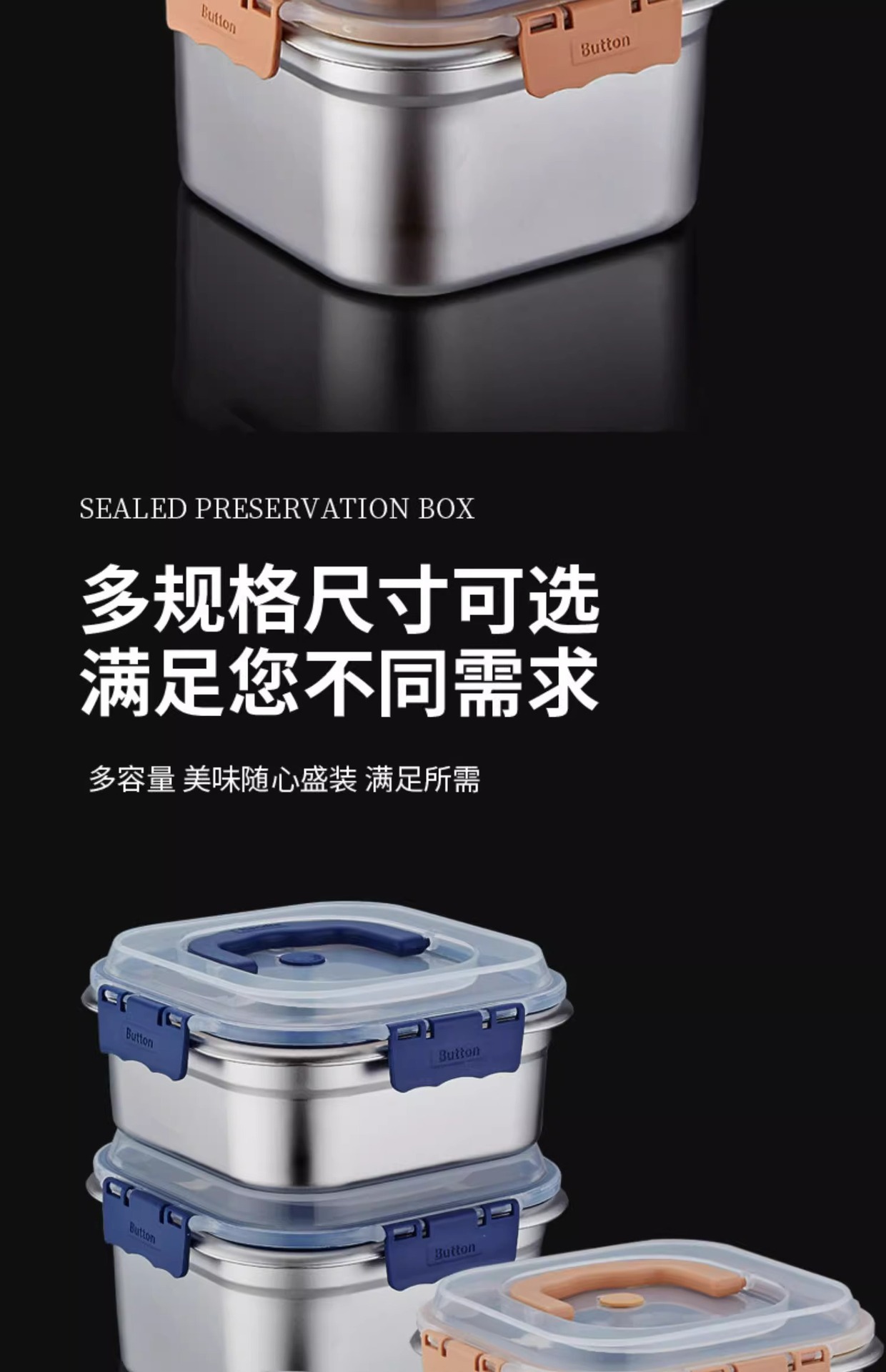 스테인레스 스틸 신선한 보관 상자 대형 피크닉 휴대용 상자 저장 가구 밀봉 탱크 저장 상자 휴대용 냉장고 저장 상자