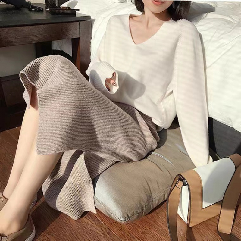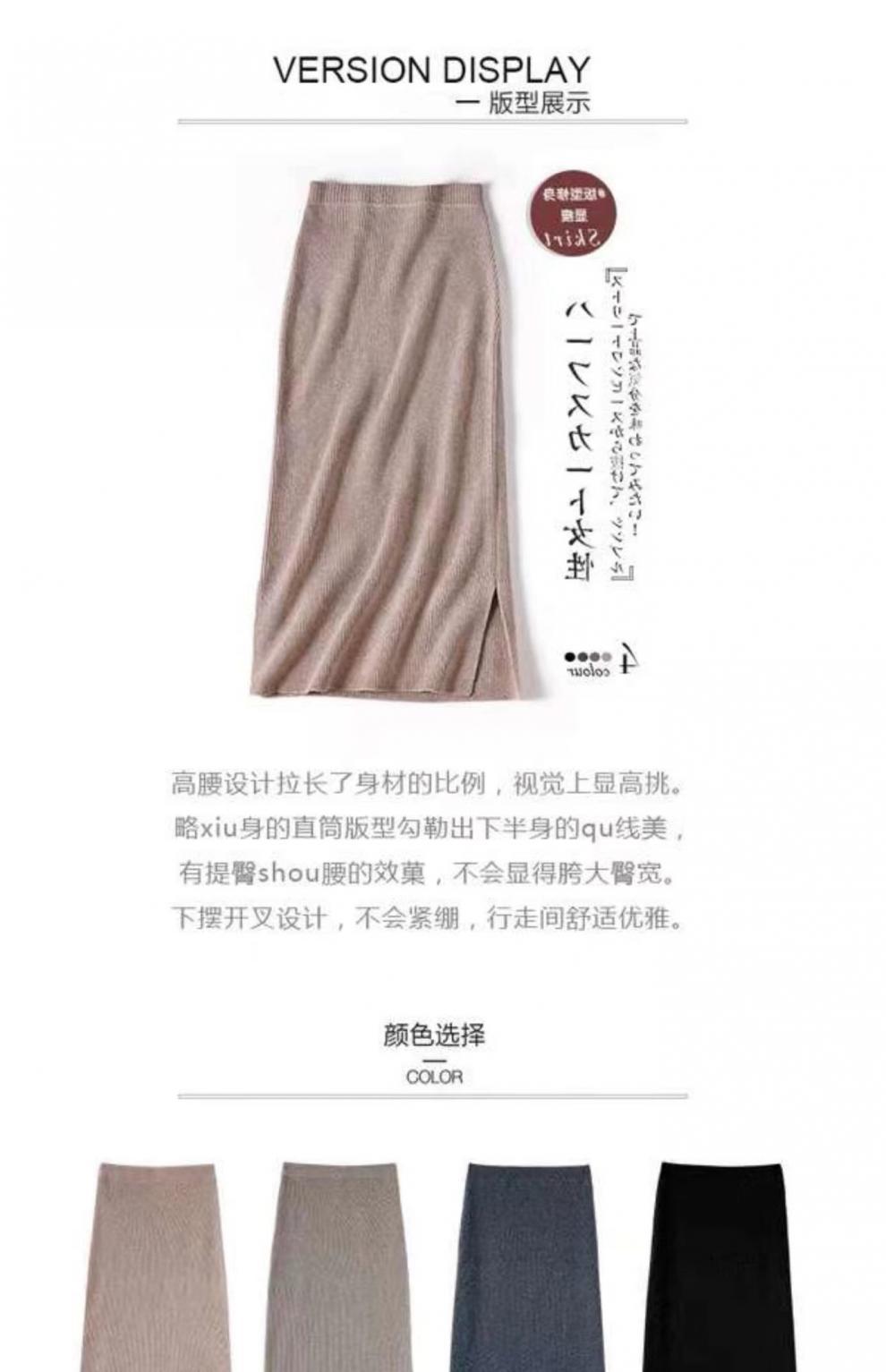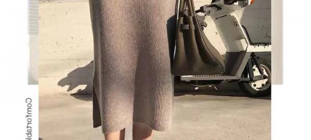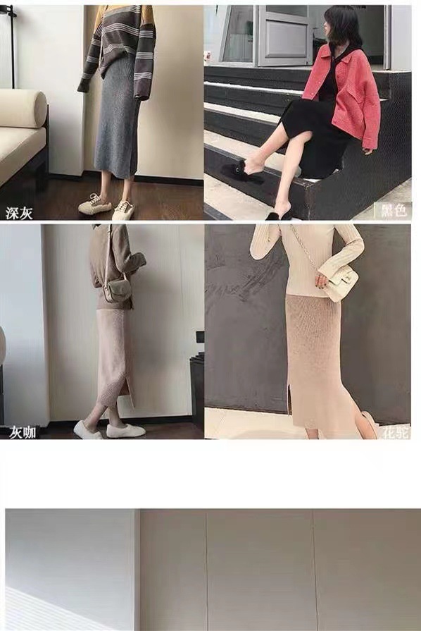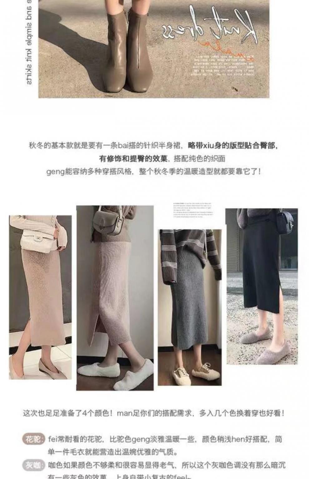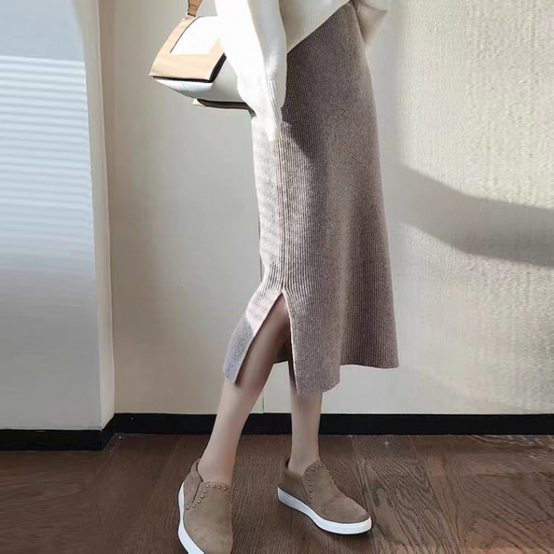 중간 길이 분할 니트 스커트 여성의 2024 년 가을과 겨울 새로운 A-모양 높은 허리 슬리밍 쉬스 우아한 트렌디 스커트