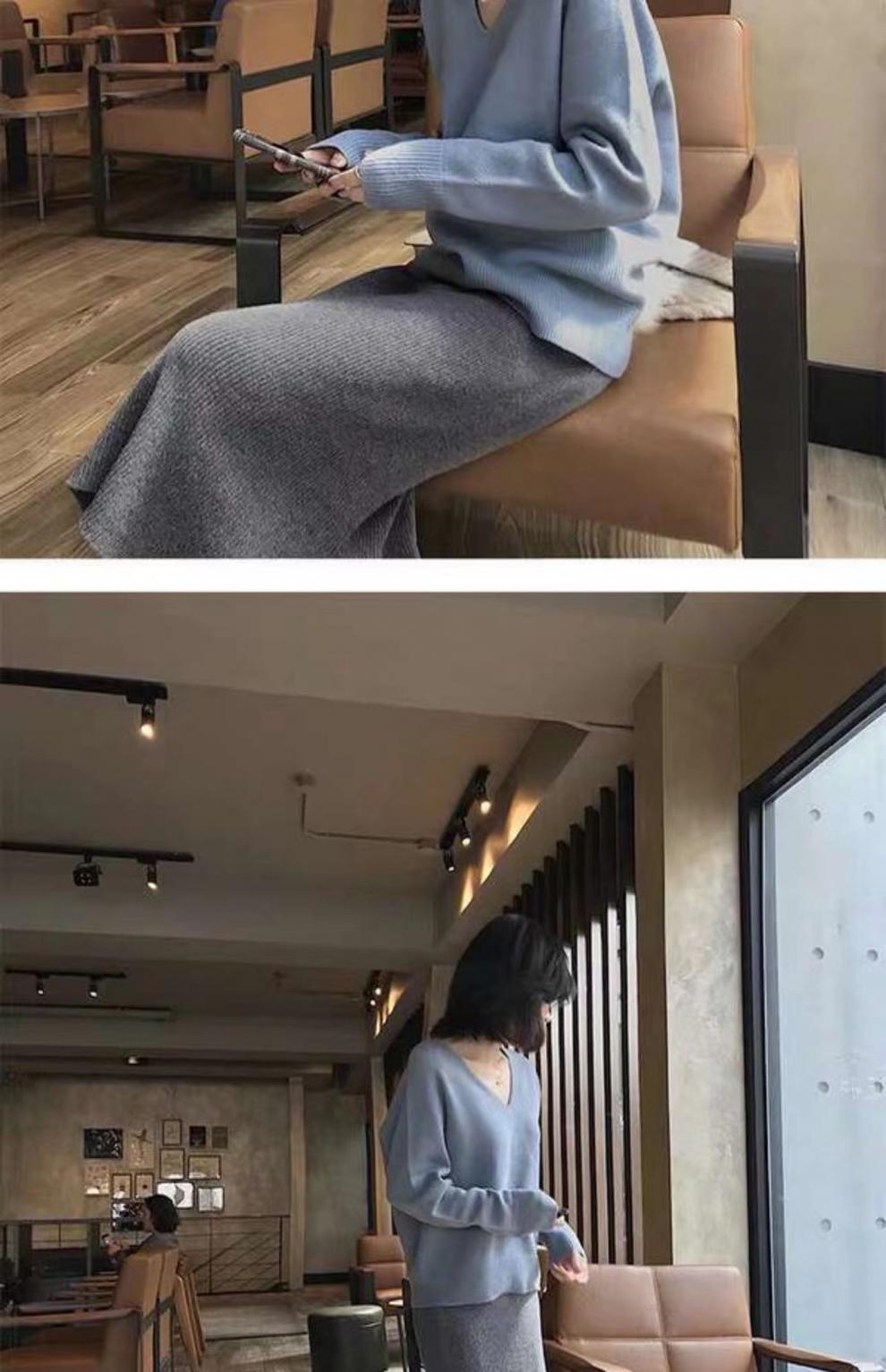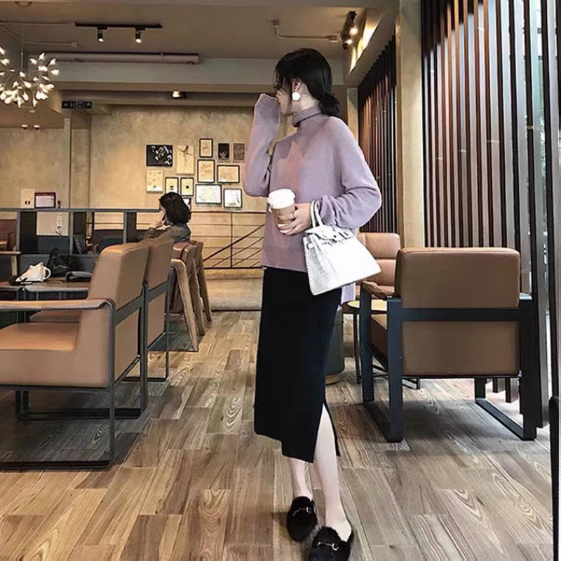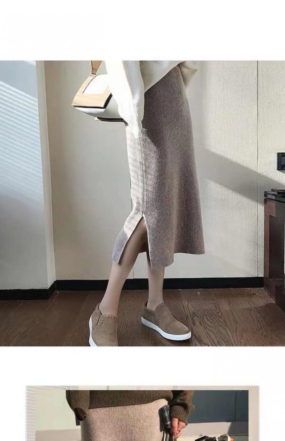 중간 길이 분할 니트 스커트 여성의 2024 년 가을과 겨울 새로운 A-모양 높은 허리 슬리밍 쉬스 우아한 트렌디 스커트스토어 가기