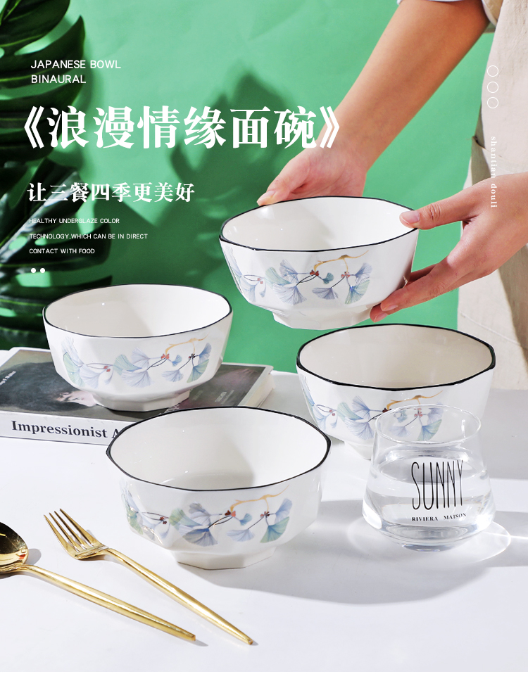 6 인치 국수 그릇 4 팩 19.8 위안 창조적 인 성격 가정용 세라믹 은행나무 잎 인스턴트 국수 그릇 수프 그릇 물 Heng Ming