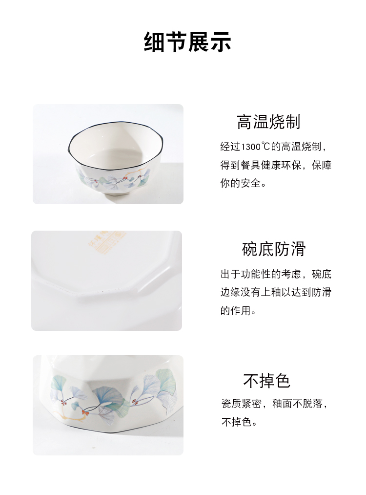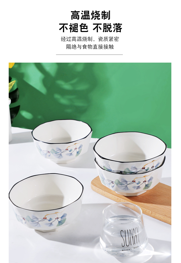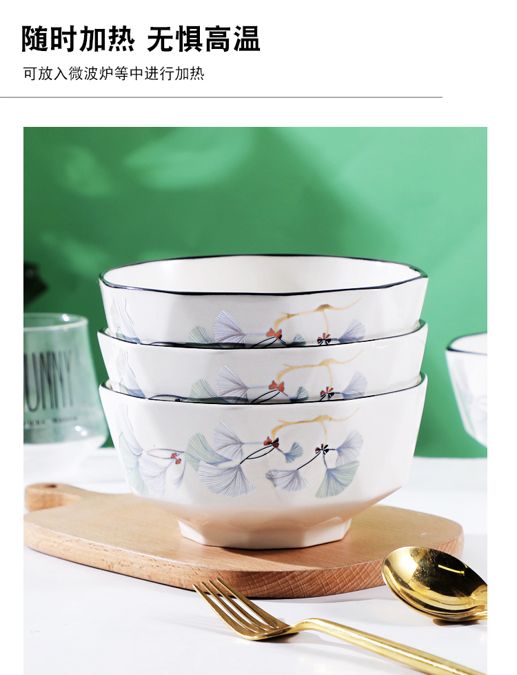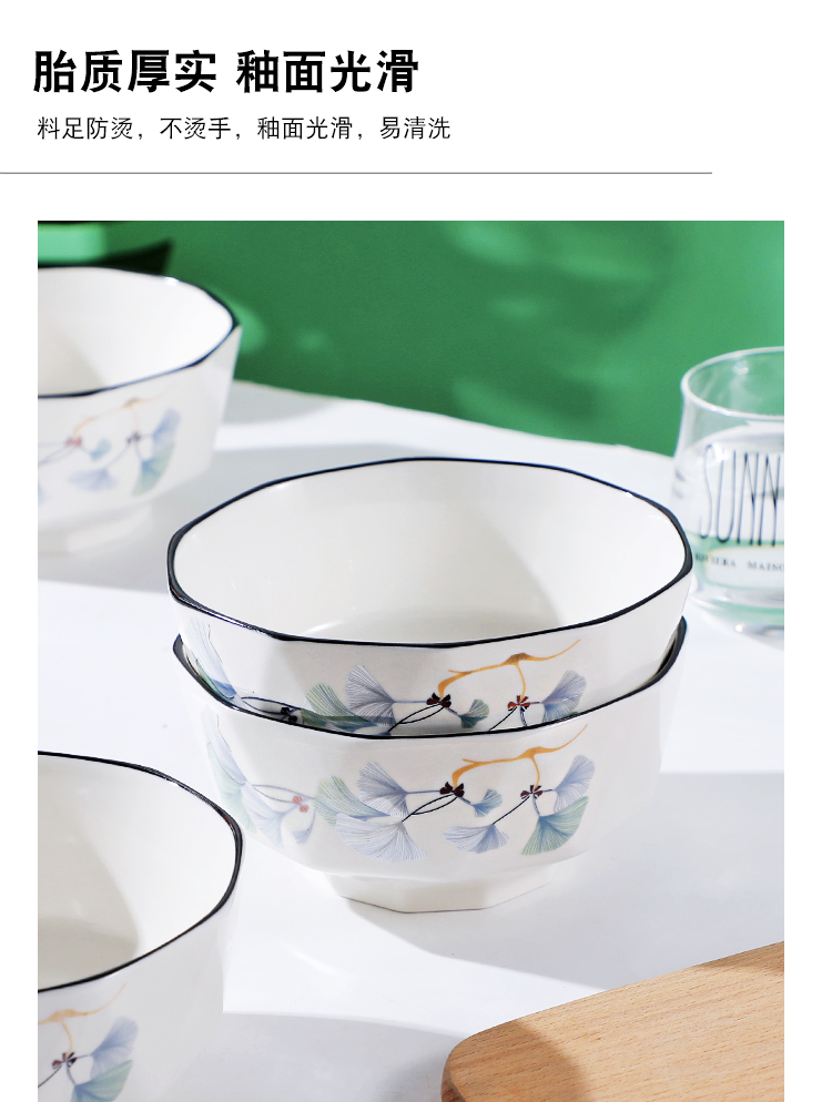 6 인치 국수 그릇 4 팩 19.8 위안 창조적 인 성격 가정용 세라믹 은행나무 잎 인스턴트 국수 그릇 수프 그릇 물 Heng Ming스토어 가기