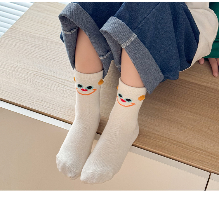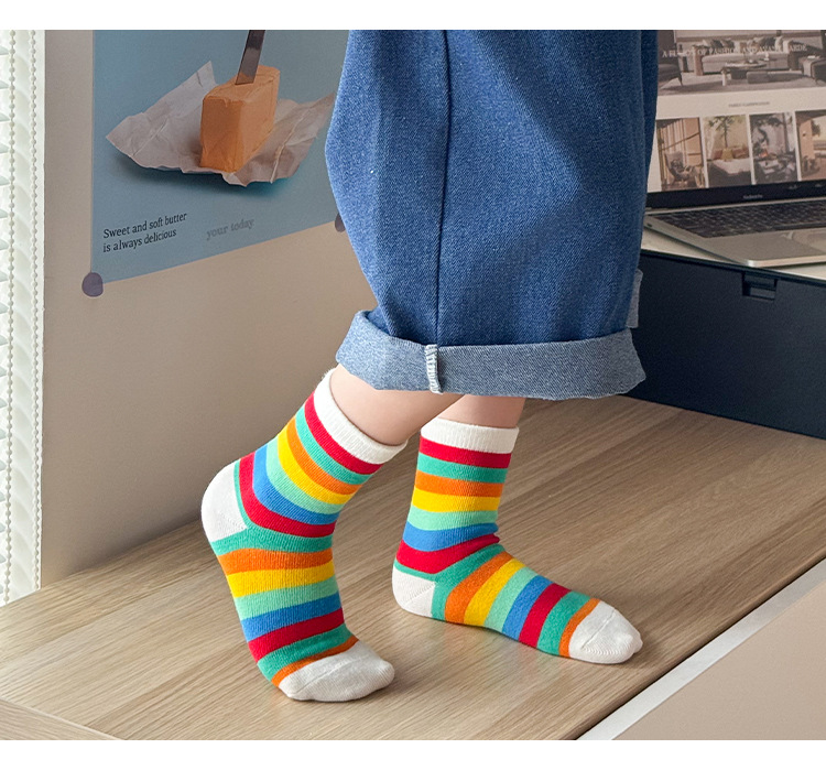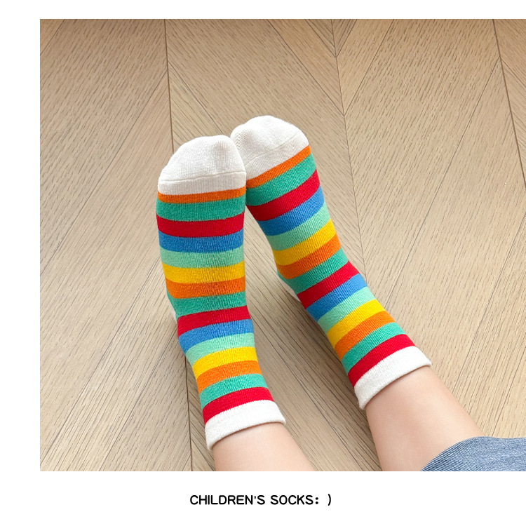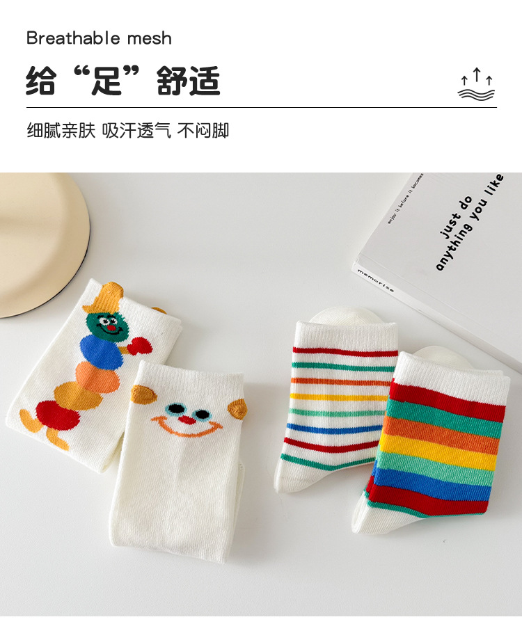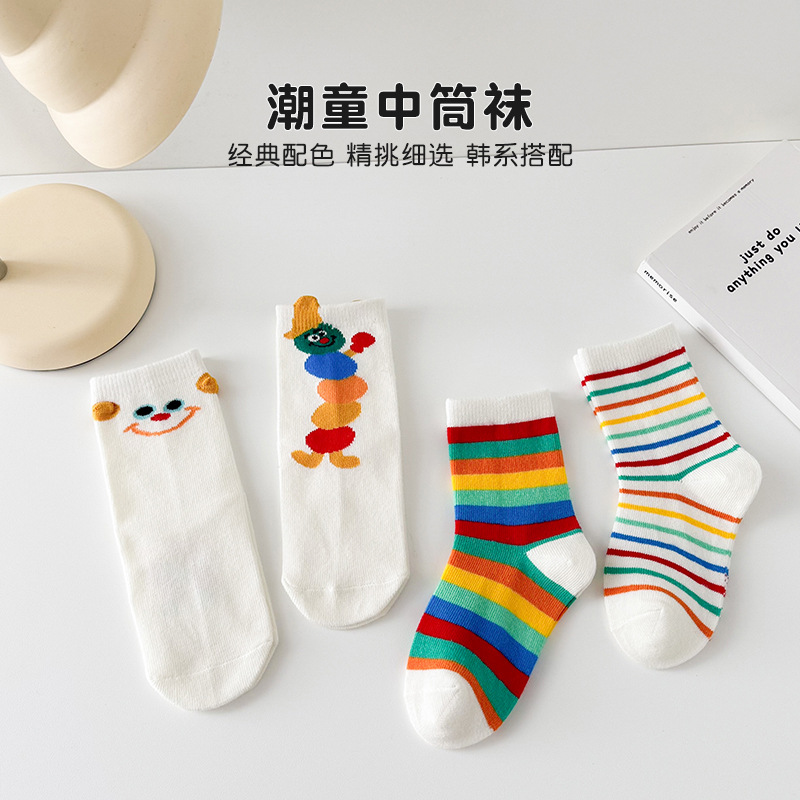어린이 양말 봄과 가을 소년과 소녀 귀여운 만화 무지개 웃는 미드 튜브 양말 대형 어린이 올 매치 코튼 양말 도매
