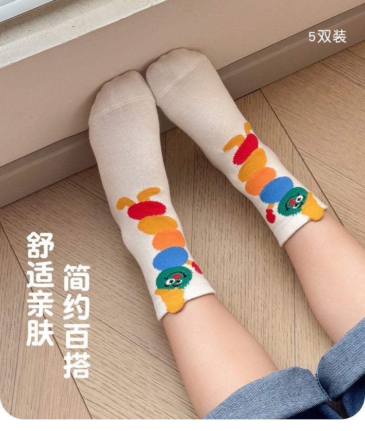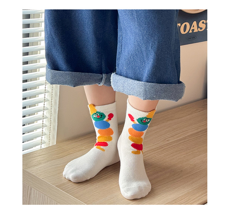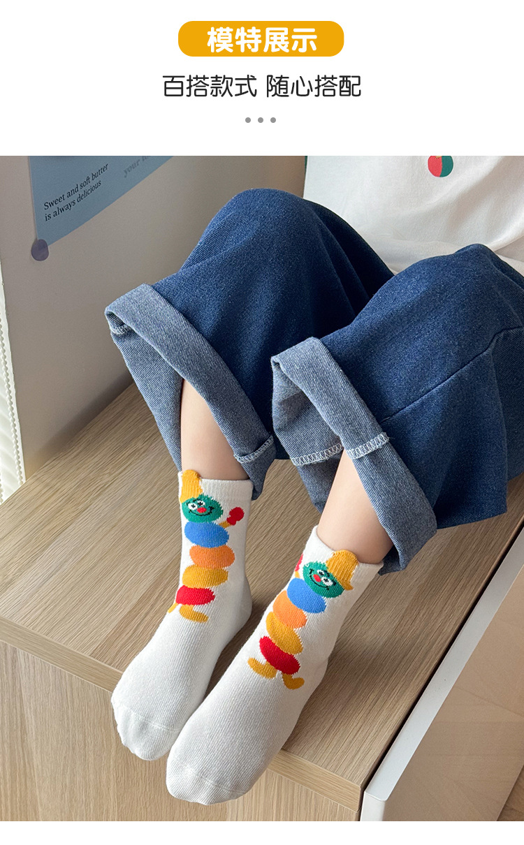 어린이 양말 봄과 가을 소년과 소녀 귀여운 만화 무지개 웃는 미드 튜브 양말 대형 어린이 올 매치 코튼 양말 도매스토어 가기