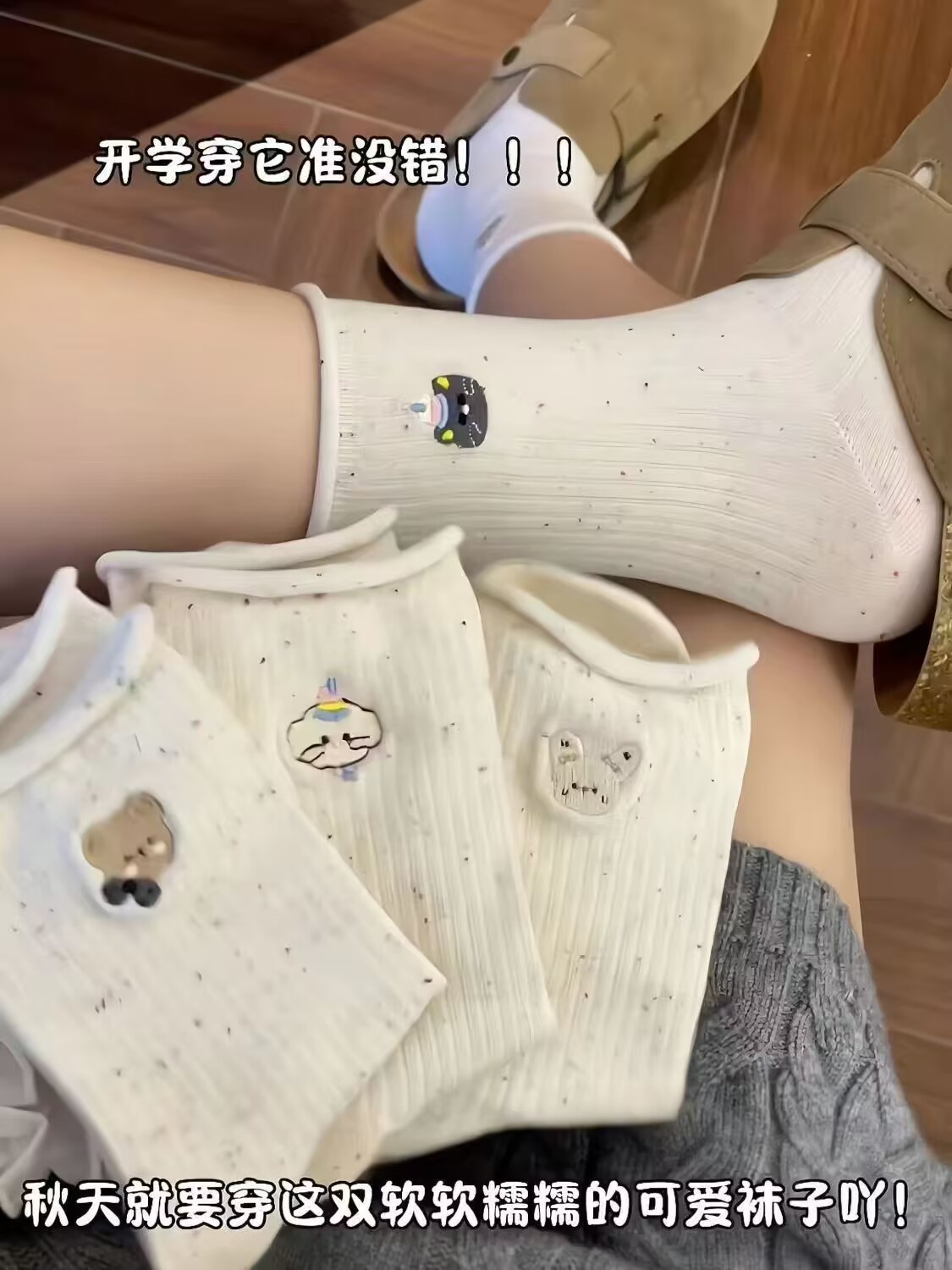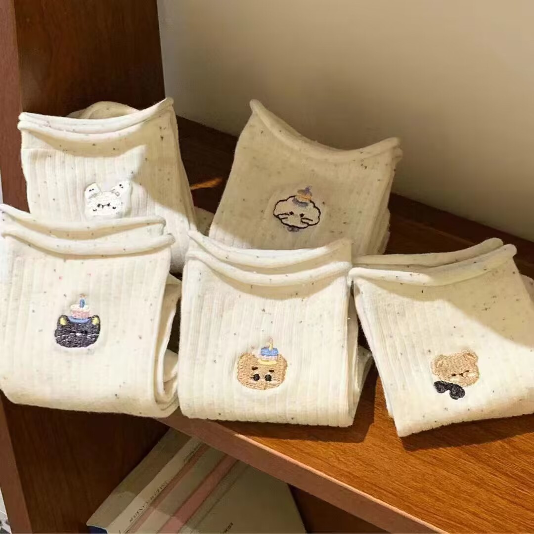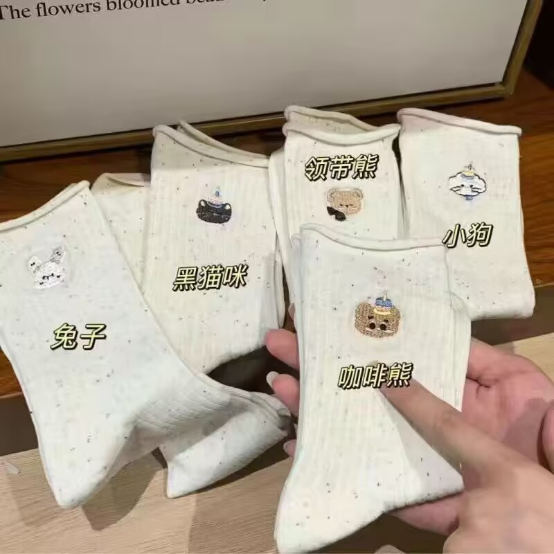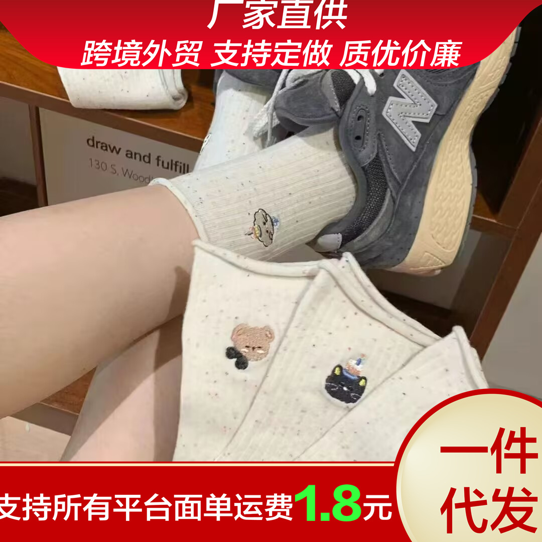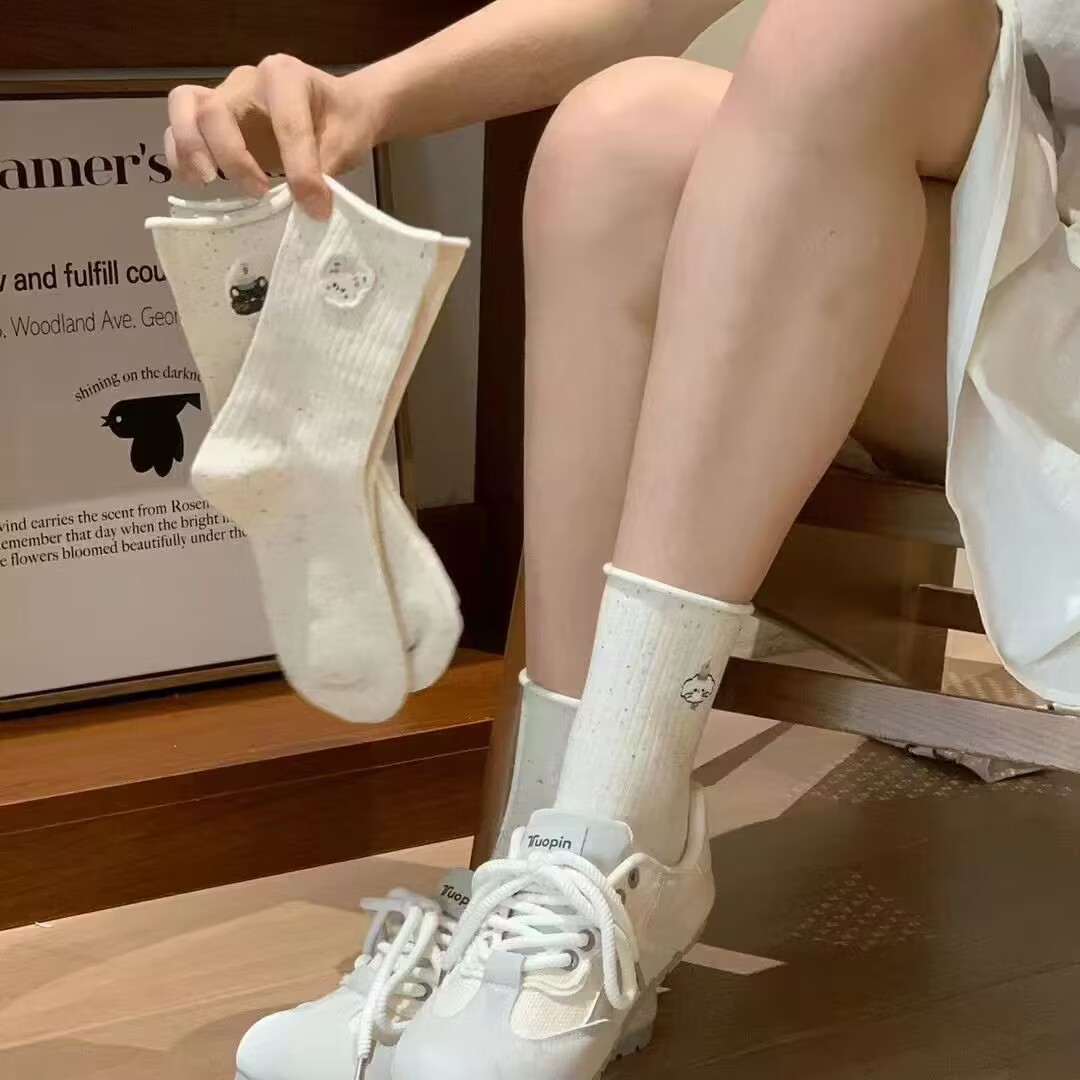 Ins 트렌디 한 일본 소녀 만화 귀여운 자수 포인트 원사 양말 여성 미드 튜브 봄과 가을 스택 양말 면화 양말 학생스토어 가기