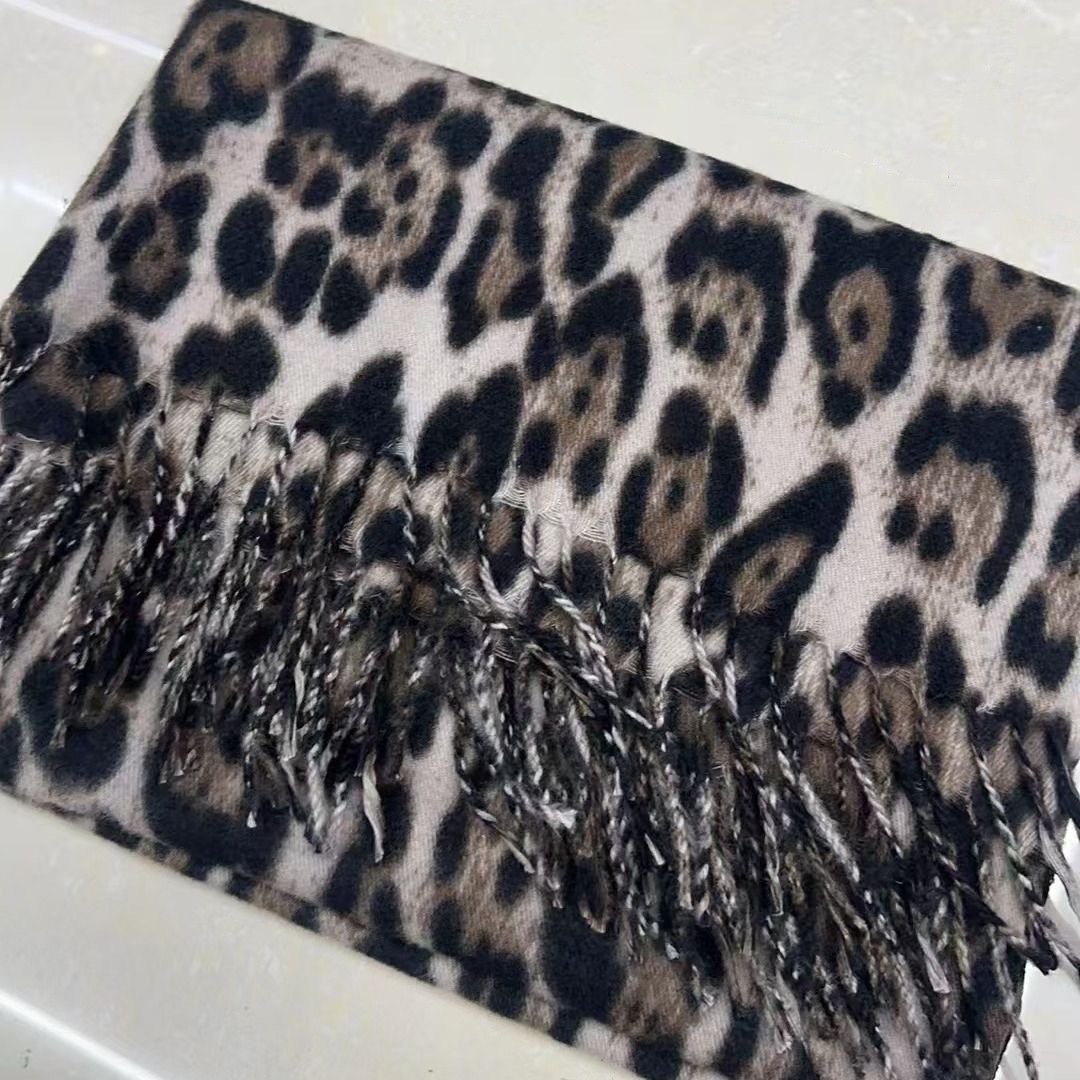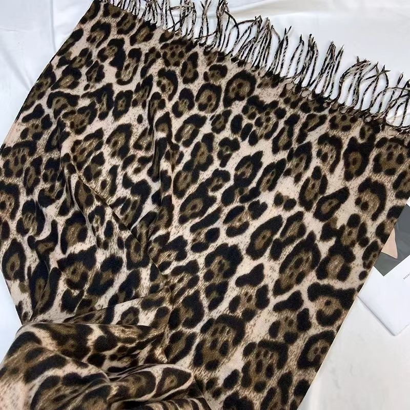 폭발 잉크 및 세척 스타일 자카드 레오파드 무늬 목도리 따뜻한 목도리 가을과 겨울 양면 올 매치 여성 스카프 짧은 술스토어 가기