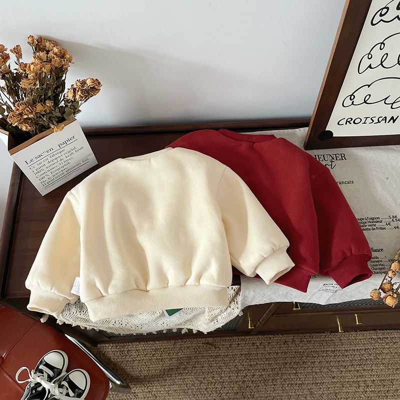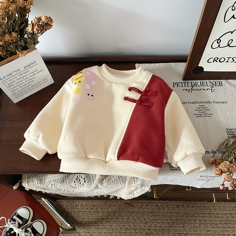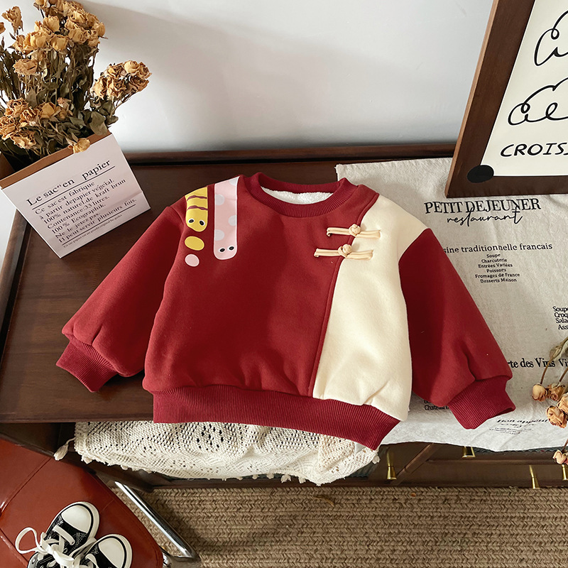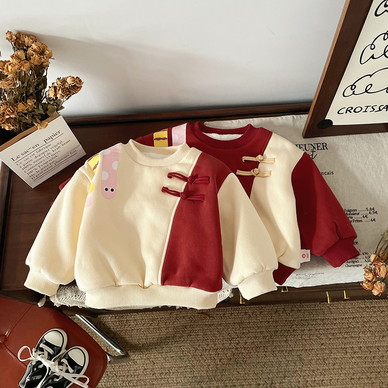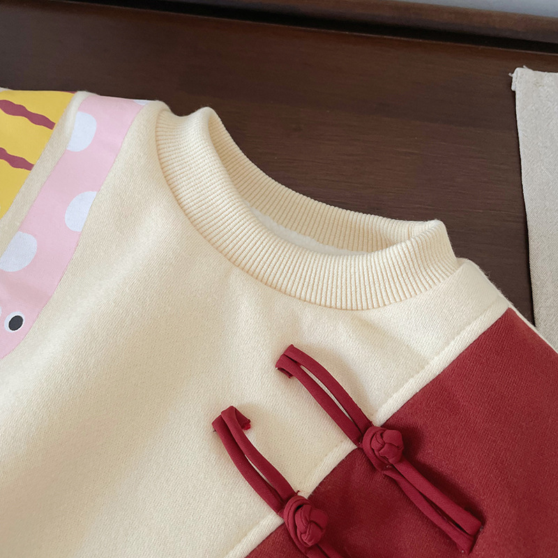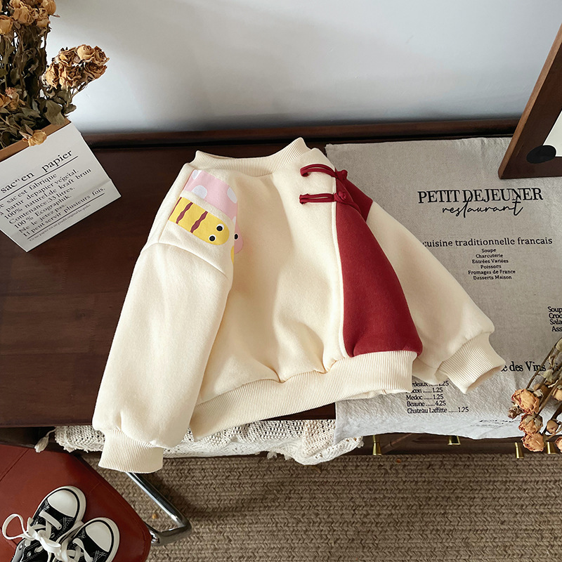 DY245810 어린이 땀 2024 겨울 중국 스타일 국가 스타일 따뜻한 기모 남자와 여자를위한 두꺼운 올 매치 땀
