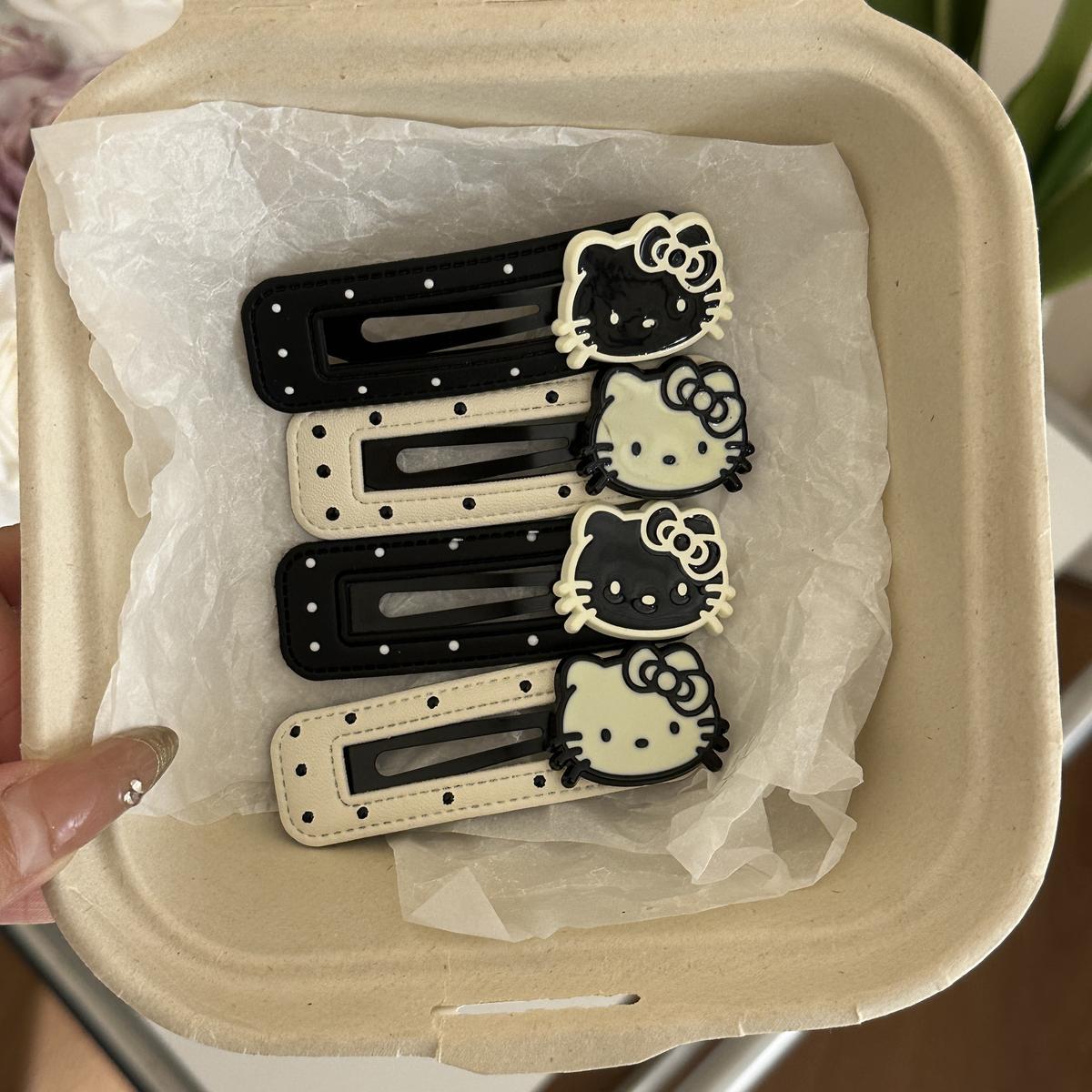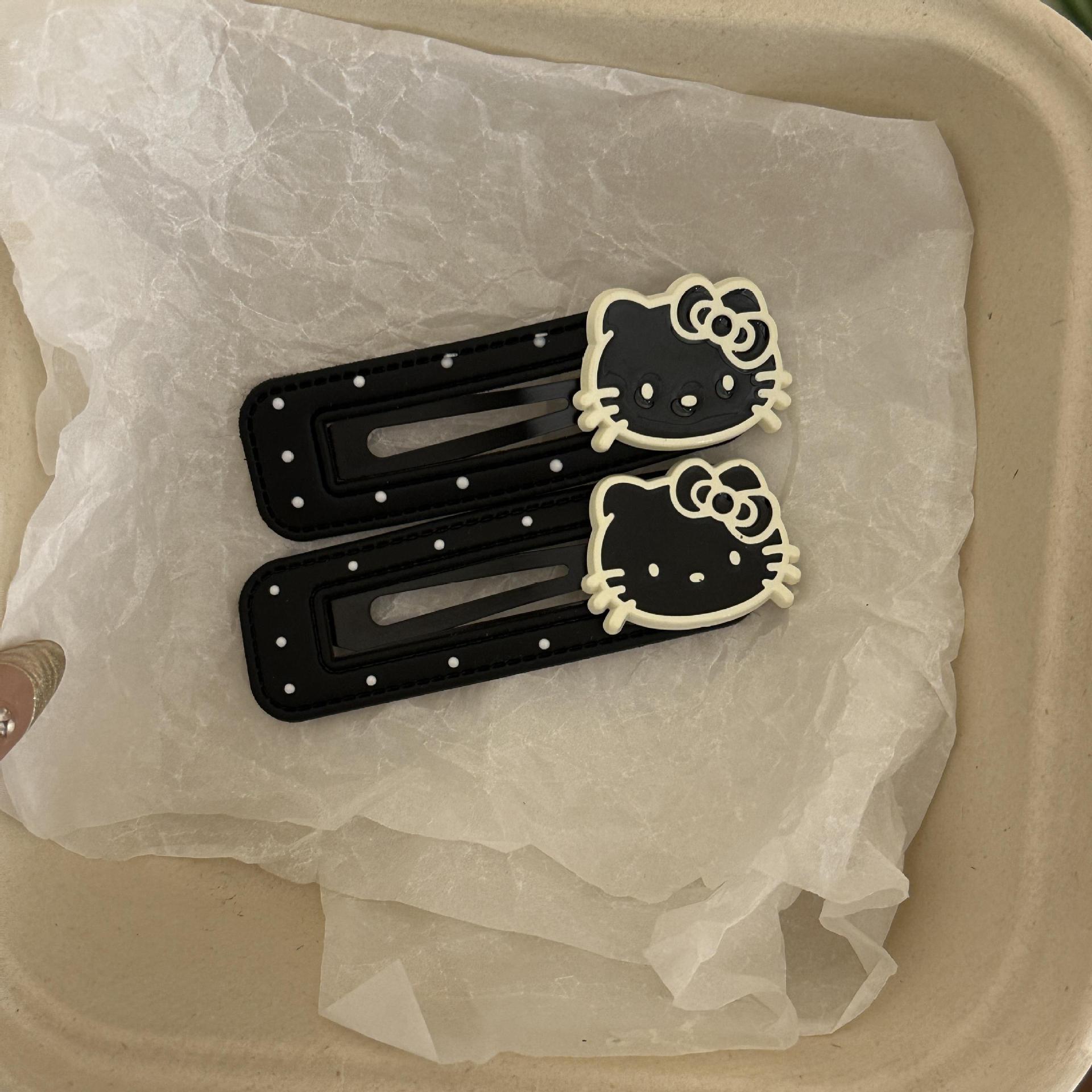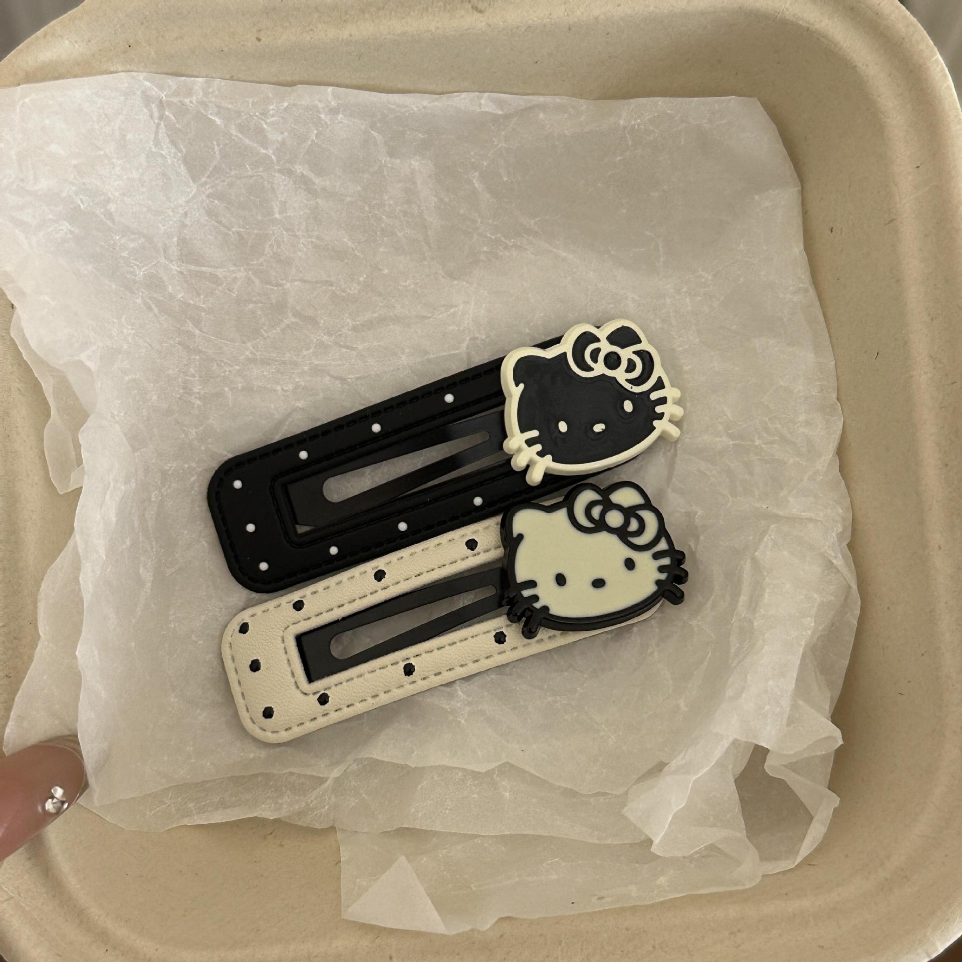 爆款韩版黑白波点kt猫可爱皮质发夹BB侧边刘海夹边头饰发卡碎发夹스토어 가기