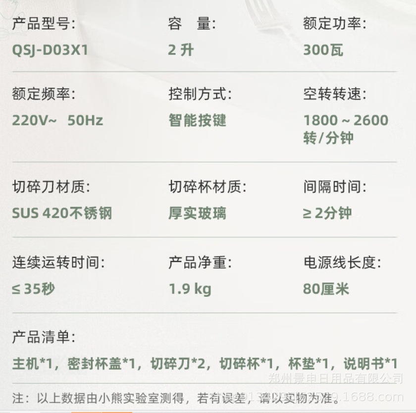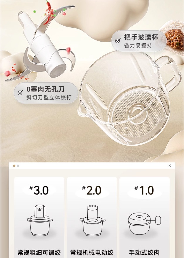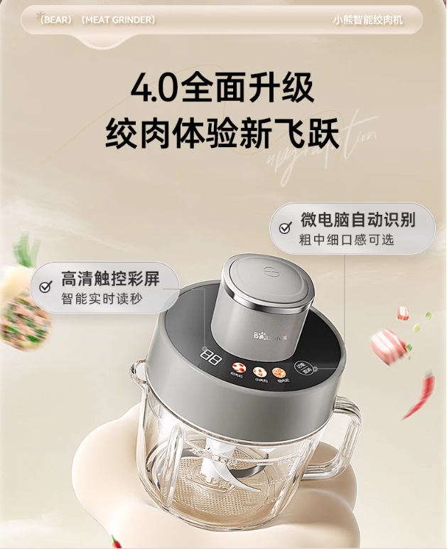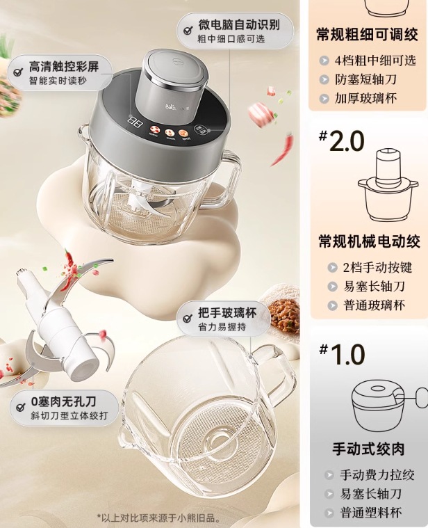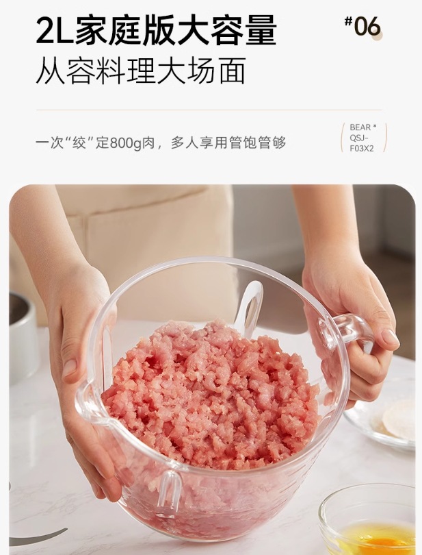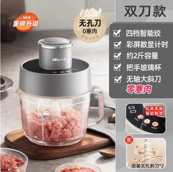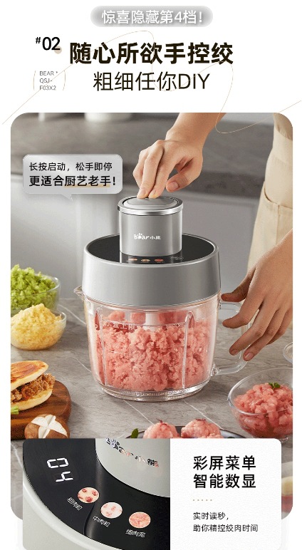 곰 고기 분쇄기 2L 가정용 먹거리 분쇄기 다기능 음식 조절 가능한 두께 고기 믹서 QSJ-F03X2스토어 가기