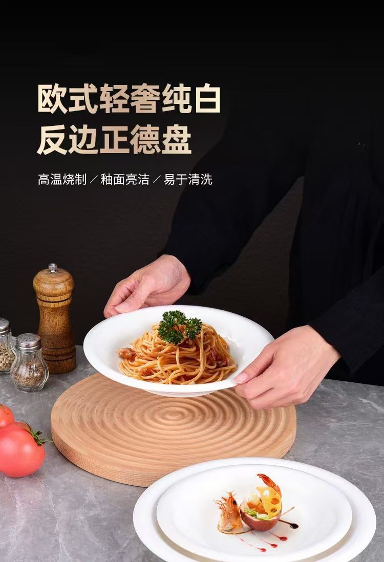 크리 에이 티브 백사이드 정드 플레이트 세라믹 라운드 깊은 수프 플레이트 뜨거운 차가운 요리 드럼 플레이트 웨스턴 레스토랑 샐러드 플레이트 수프 플레이트
