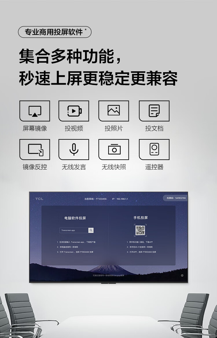 TCL 98 인치 지능형 네트워크 TV 거대한 스크린 사무실 멀티 스크린 대화 형 회의 98GA1스토어 가기