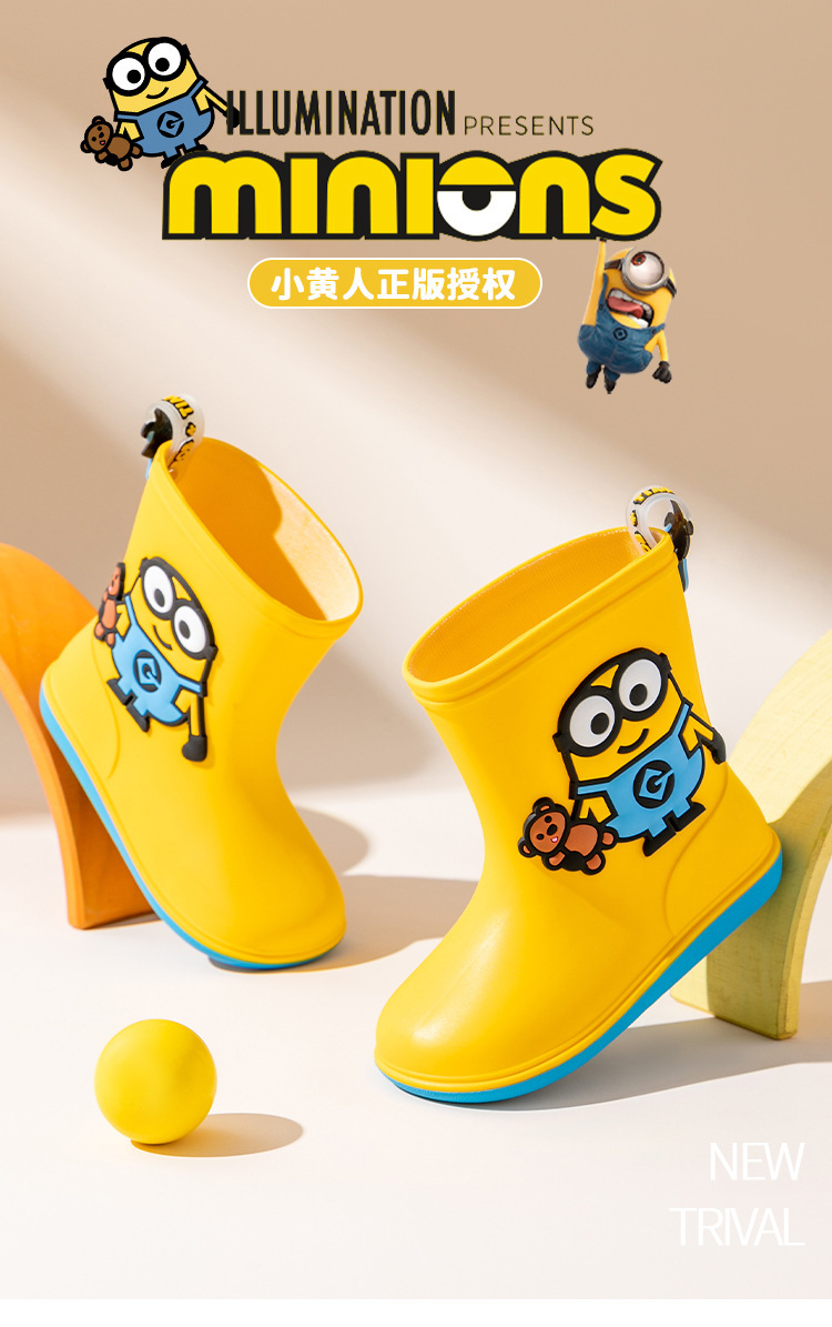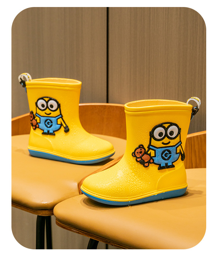 미니언 장화 소년 장화 만화 귀여운 중소 어린이 미끄럼 방지 유치원 여성용 두꺼운 밑창 노란색 아기 물화스토어 가기