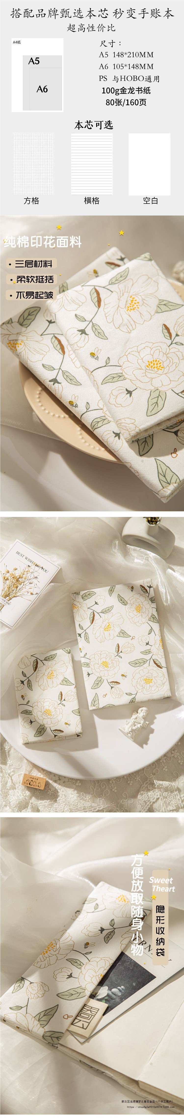 [9.9 시한] 예술적인 소녀의 옷감 책 표지 호보 조정 책 자켓 A6 핸드북 메모장 우표 차 신제품