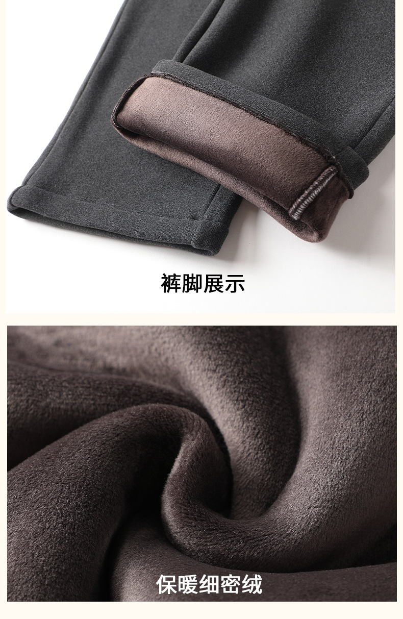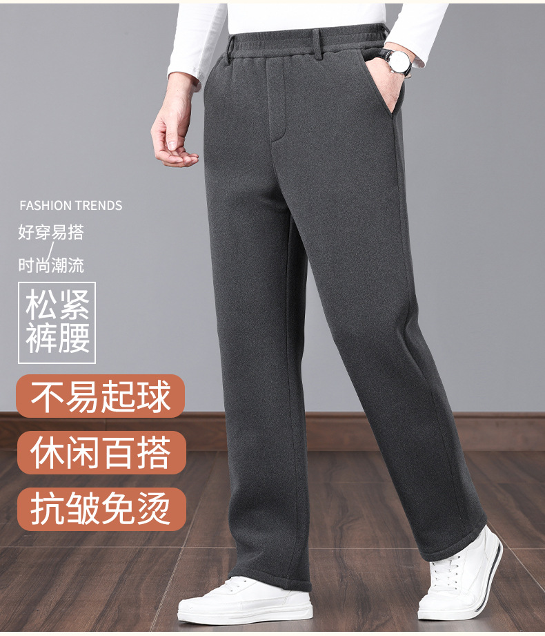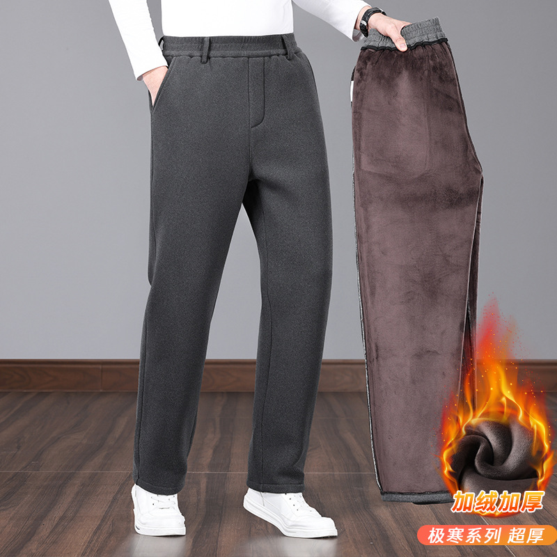 새로운 도착 기모 두꺼운 방풍 바지 가을과 겨울 두꺼운 따뜻한 남성용 캐주얼 바지 중견 스트레이트 레그 엘라스토탄성 허리 바지