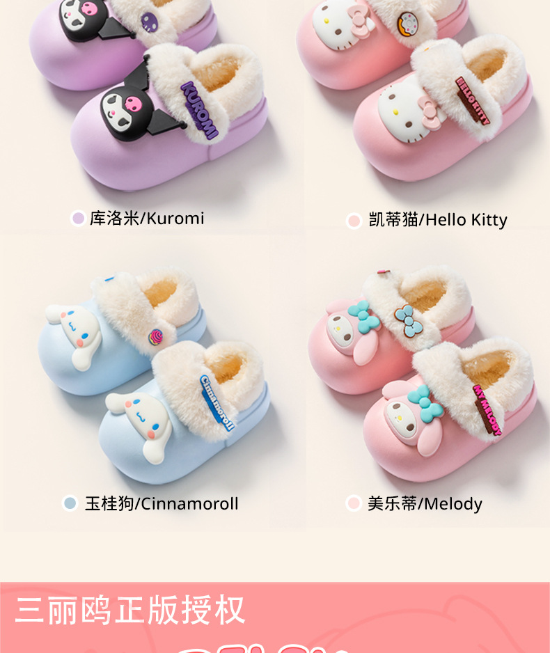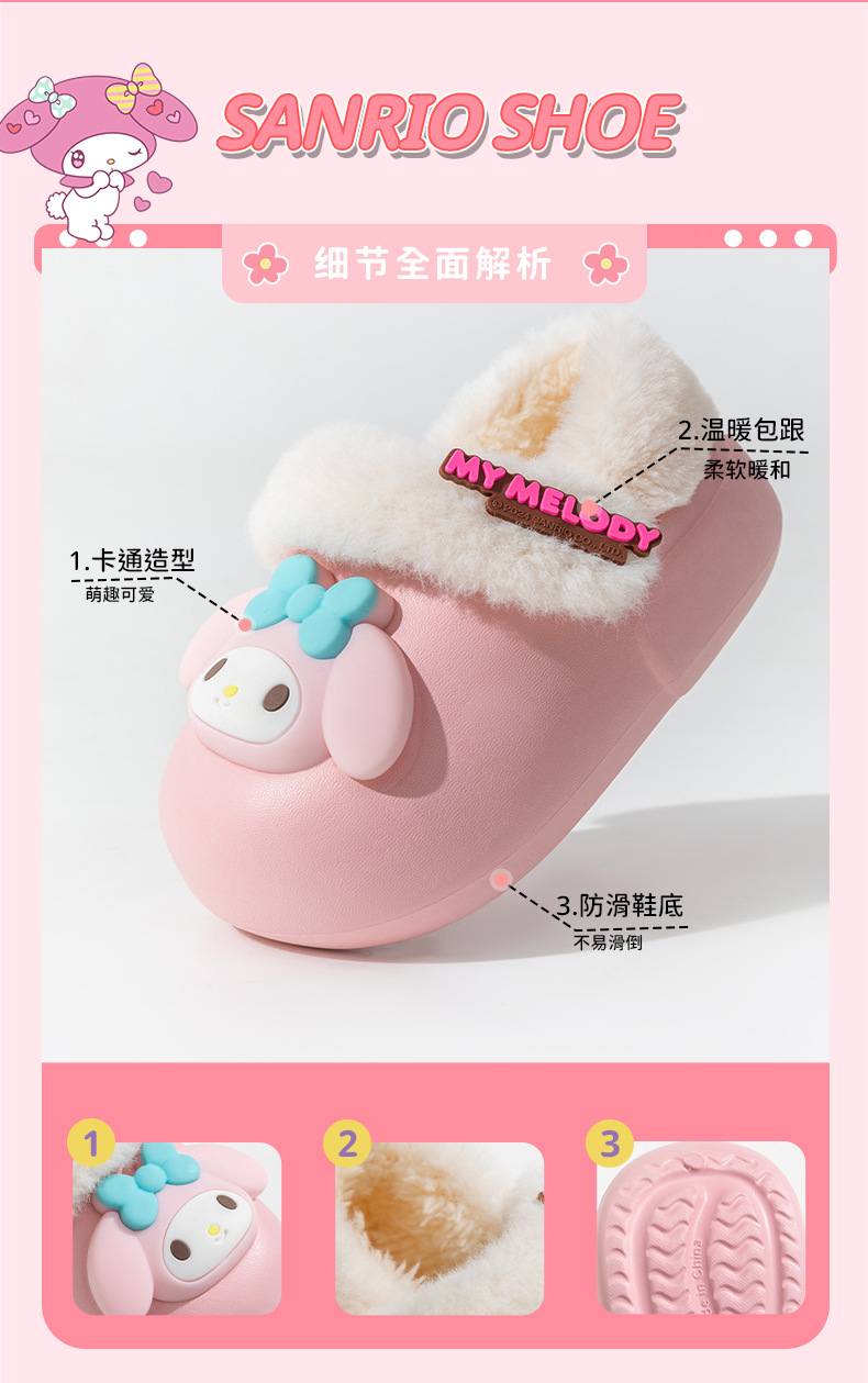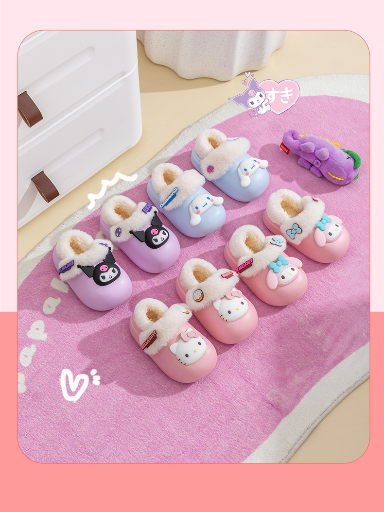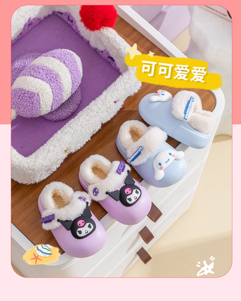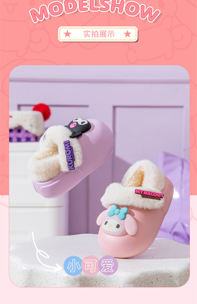 산리오 코튼 슬리퍼 소녀 만화 겨울 실내 집 비 슬립 쿨로 미 양털 따뜻한 면 슬리퍼 귀여운스토어 가기