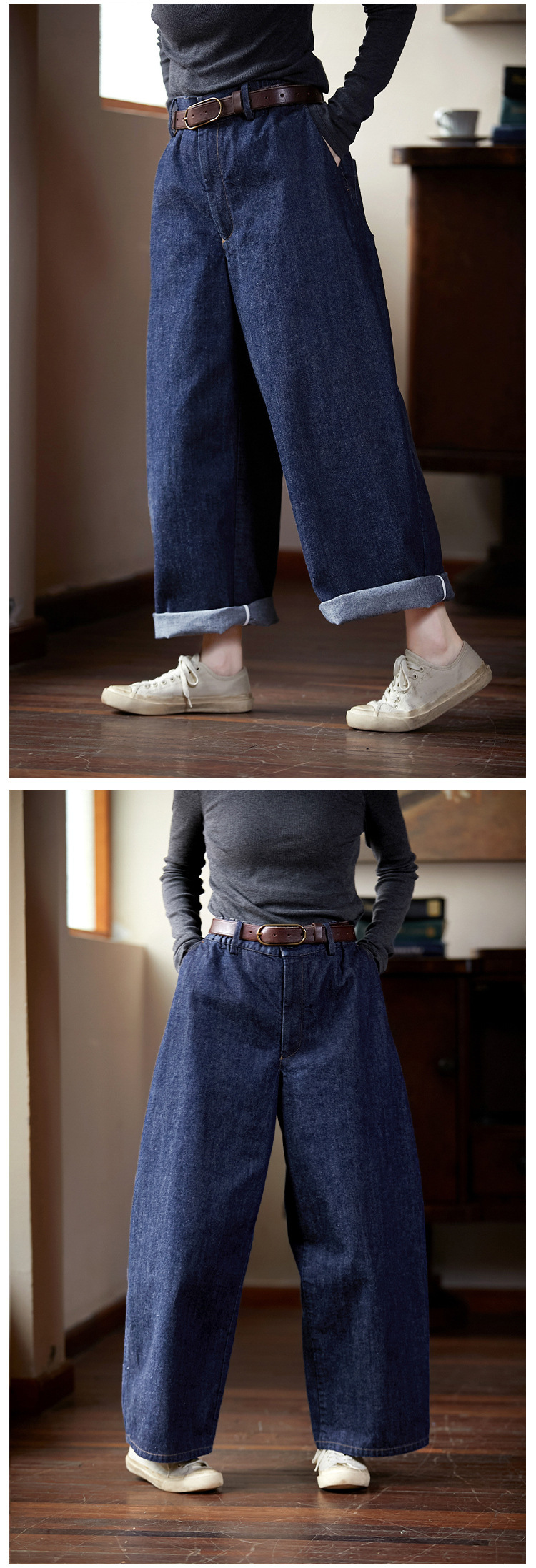 봄과 가을 스타일 네롤리 블루 클래식 문학 복고풍 내마모성 와이드 레그 반탄성 청바지 바지 캐주얼 스키니 여성 바지스토어 가기