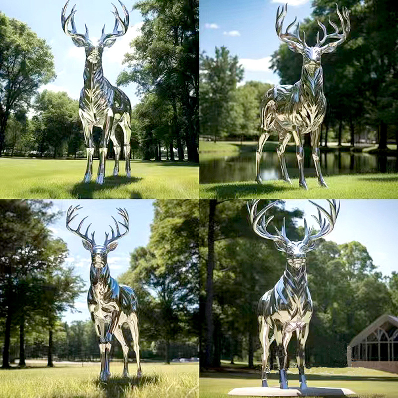 스테인리스 스틸 조각 맞춤 제작 대형 사슴 물경 파도 달빛 거울 학교 정원 인공산수 조경 조각스토어 가기