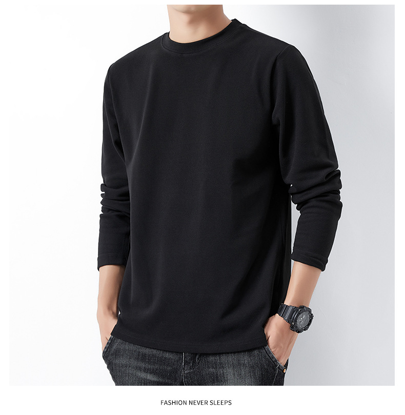 양면 벨벳 남성용 순면 유행 남성용 긴팔 티셔츠 라운드 넥 반소매 어퍼 의류 티셔츠 트렌디 브랜드베이스 셔츠스토어 가기