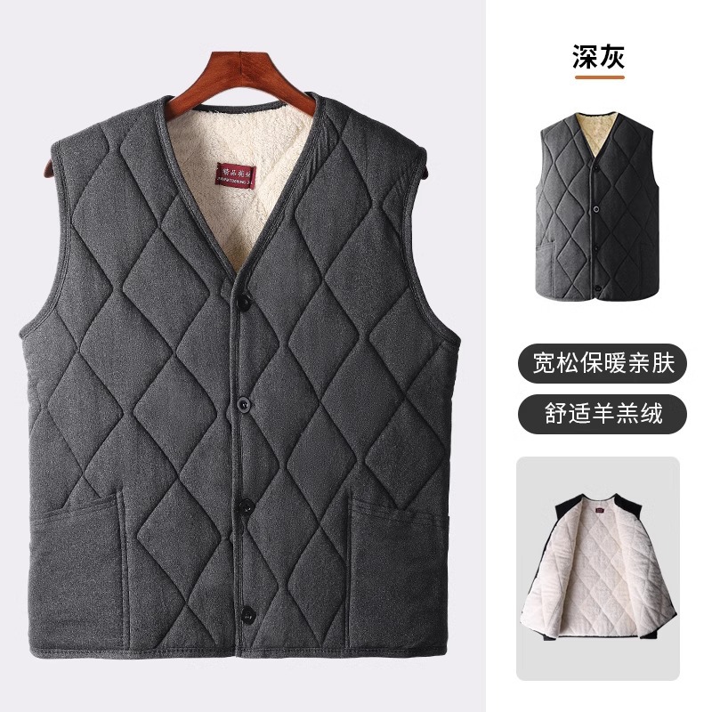 가을과 겨울에 따뜻한 노인의 기모 조끼 아빠의 어린 양 벨벳웨어 한 조각 중년 및 노인의 가을은 남성을위한 두꺼운 조끼스토어 가기