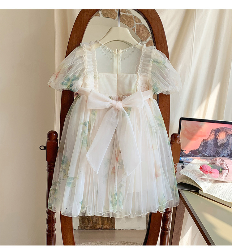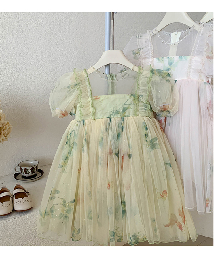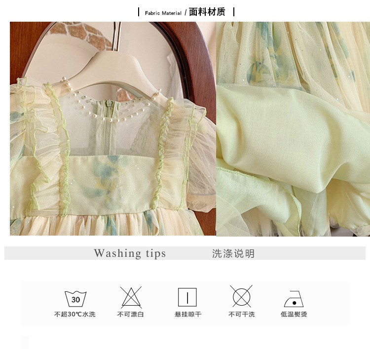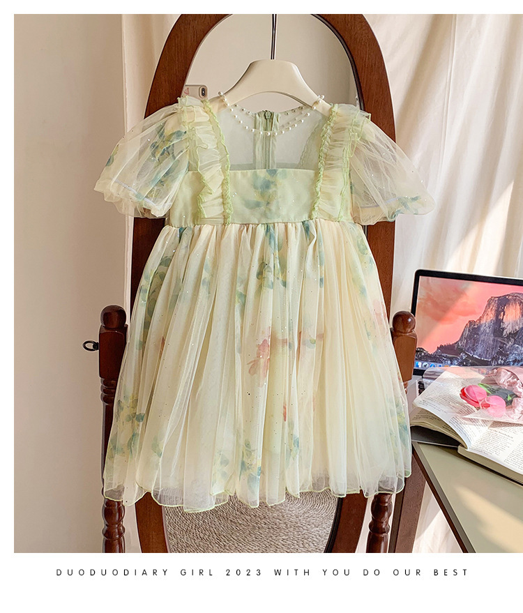 소녀 공주 원피스 2024 여름 새로운 리브 가든 어린이 푸스 원피스 어린 소녀의 원피스 원피스