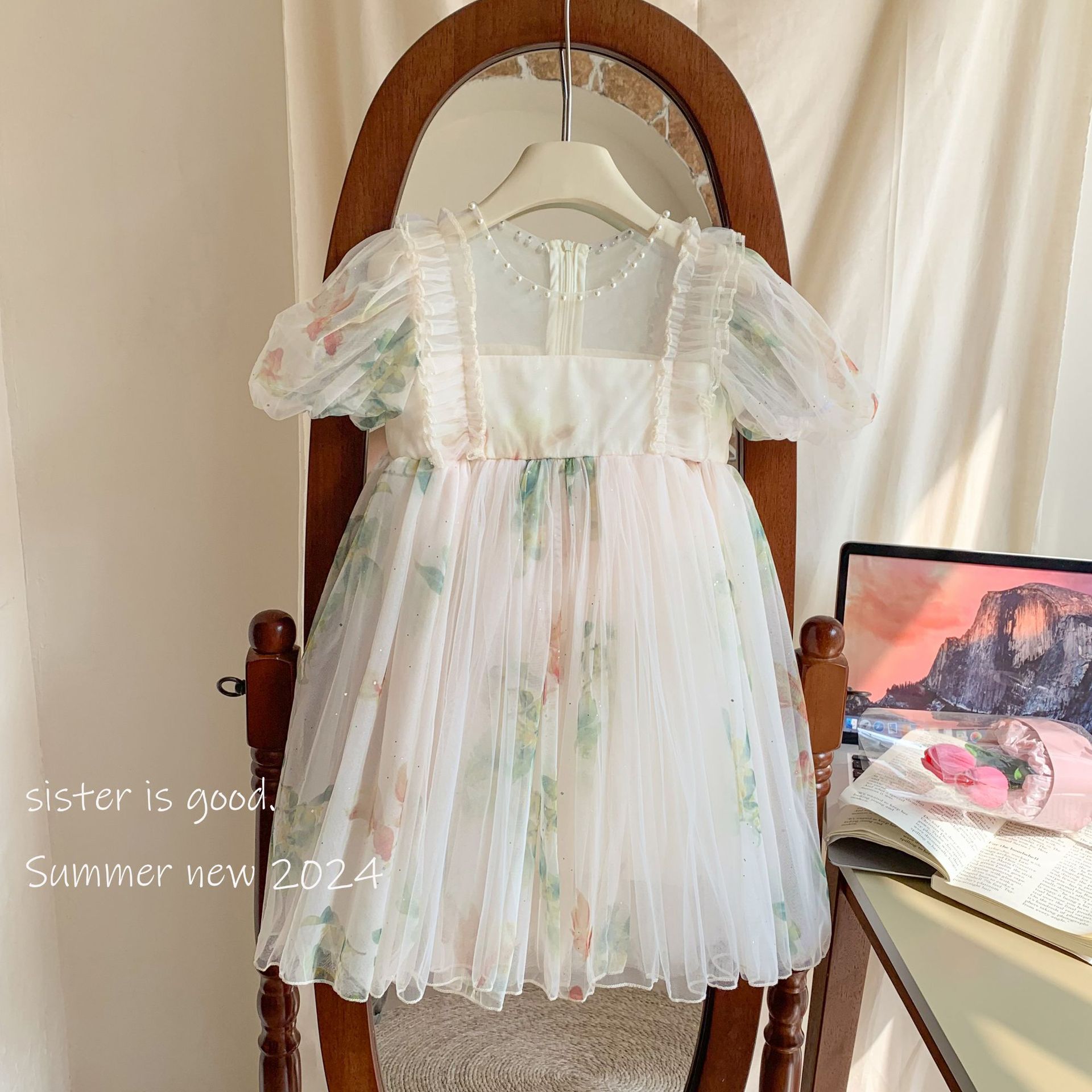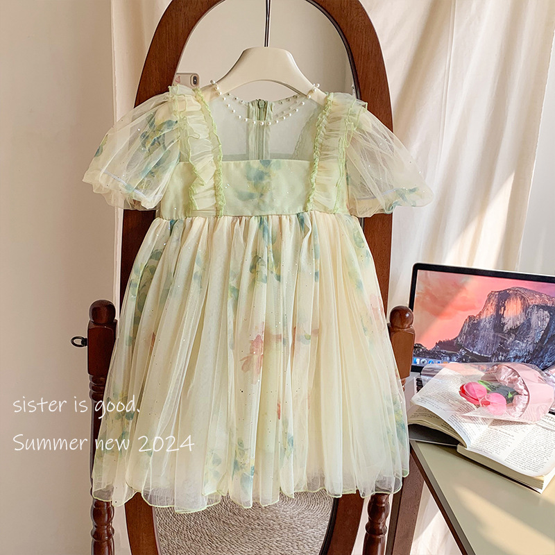 소녀 공주 원피스 2024 여름 새로운 리브 가든 어린이 푸스 원피스 어린 소녀의 원피스 원피스스토어 가기