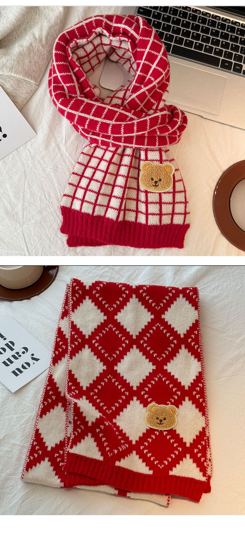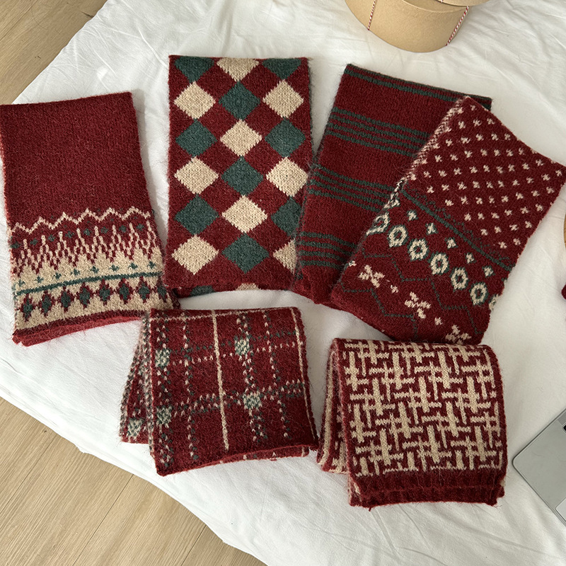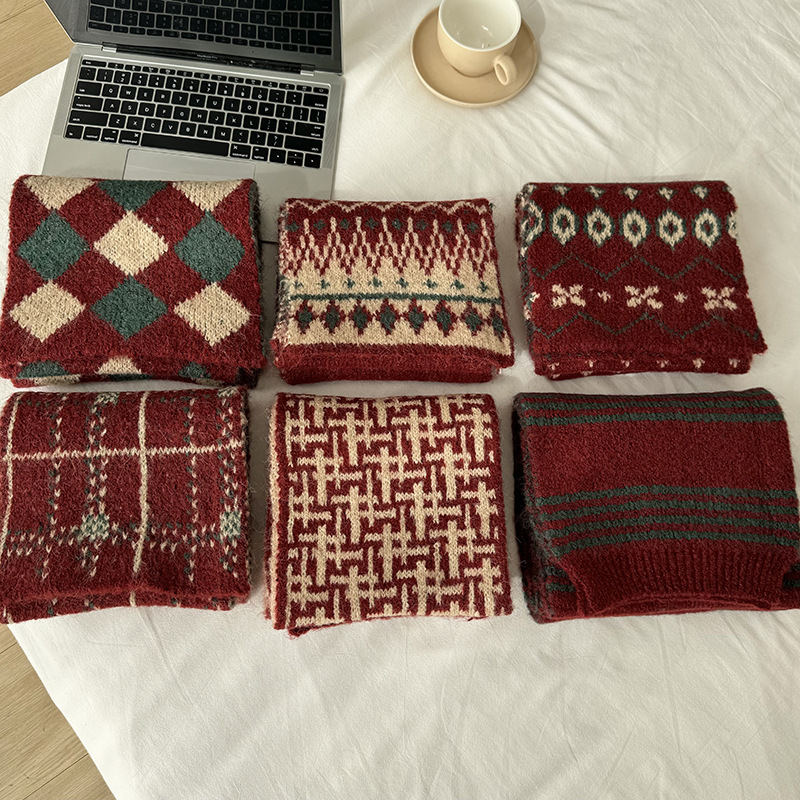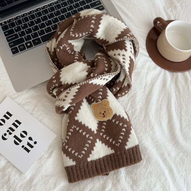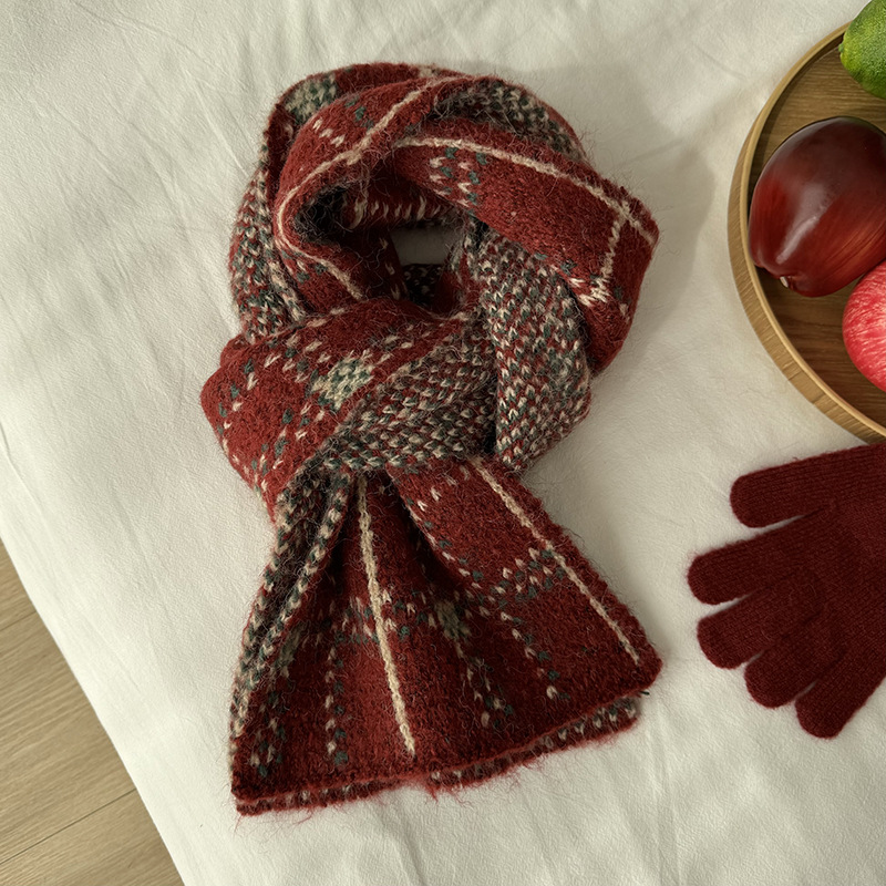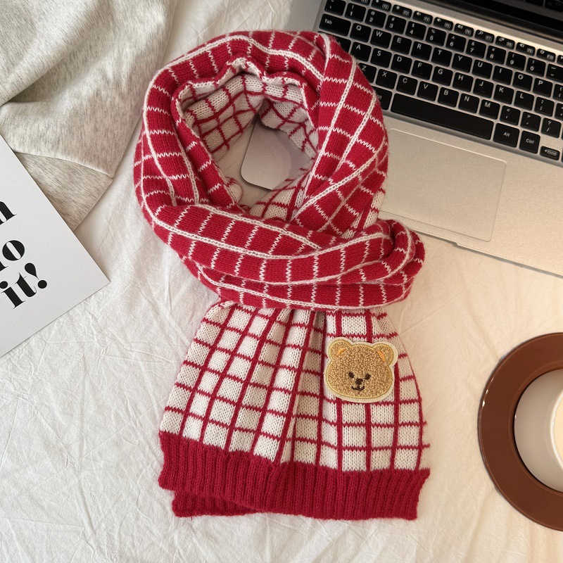 가을과 겨울 니트 크리스마스 스카프 한국 격자 무늬 아기 스카프 따뜻한 올매치 목도리 소년 소녀를위한 부모-자식 스카프