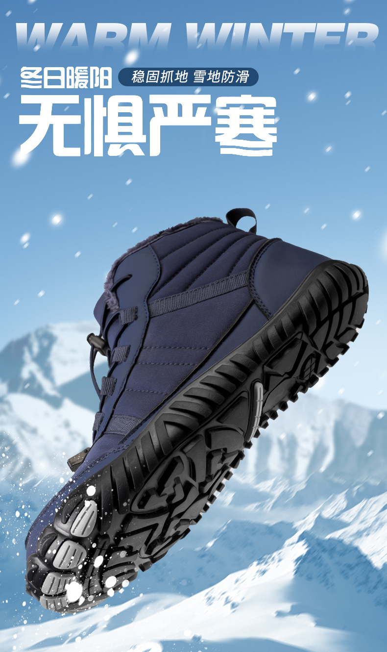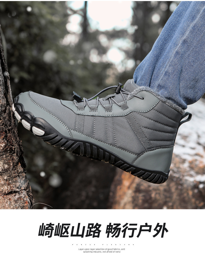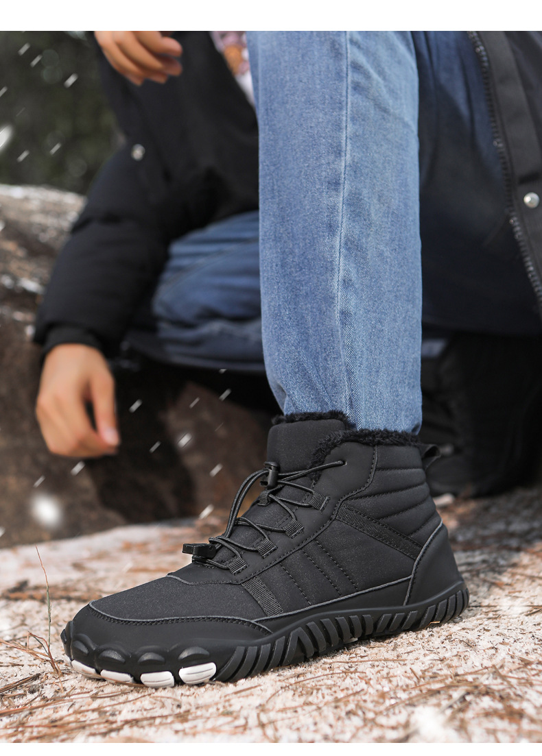국경 간 야외 스노우 부츠 남성용 미끄럼 방지 방수 기모 따뜻한 다섯 손가락 신발면 패딩 신발 여성의 두꺼운 밑창 맨발 겨울 부츠