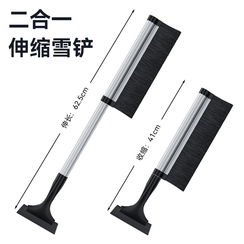 ●可伸缩铝合金拉杆,可自由调节长度,方便清扫冰雪,适用各种车型
