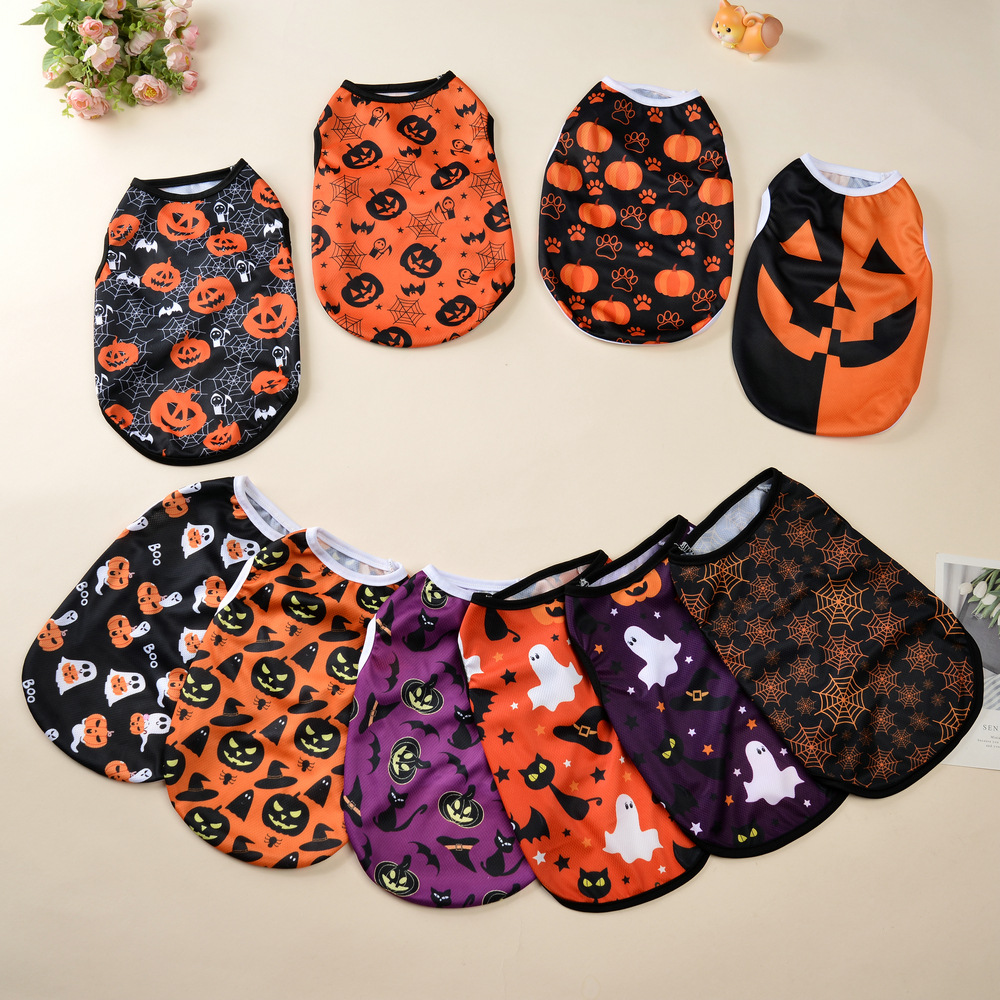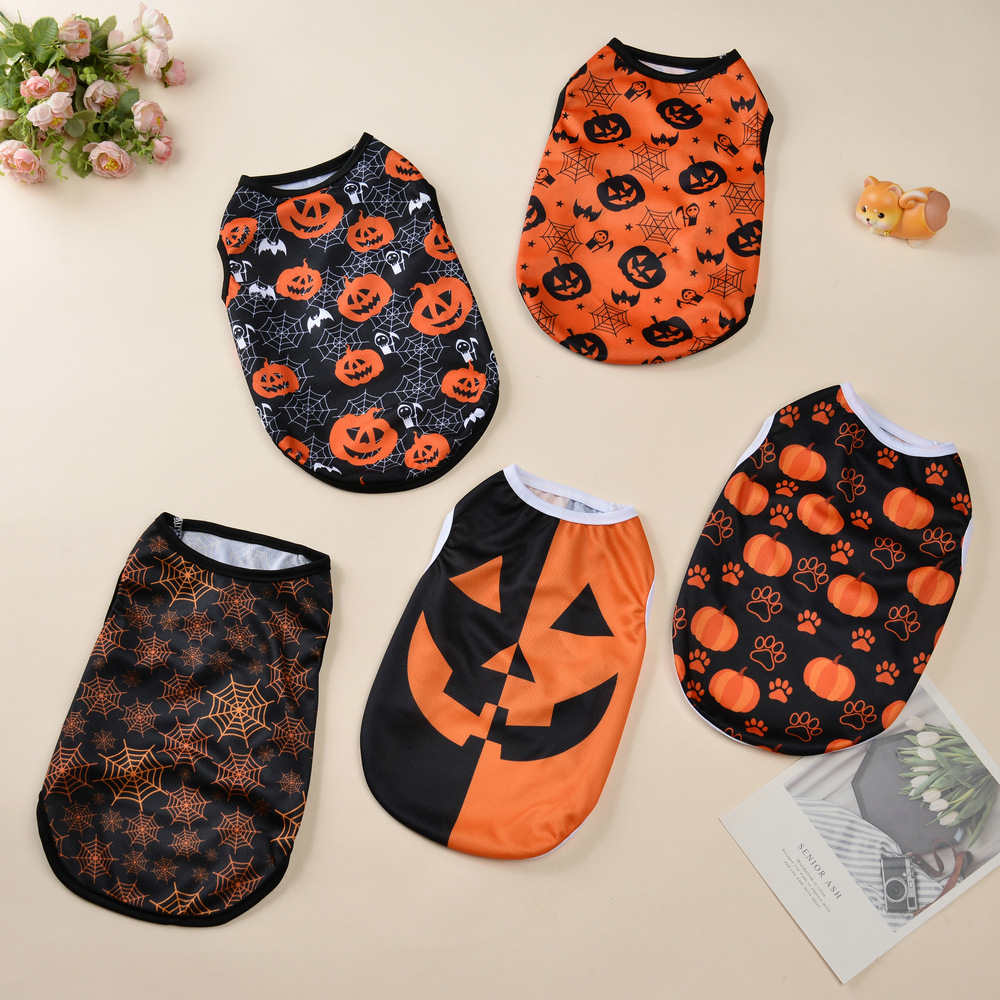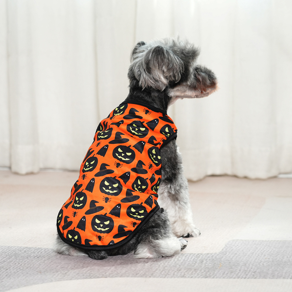 국경 봄과 가을 개 조끼 할로윈 장식 호박 인쇄 작은 중간 개 개 개 고양이 애완 동물 옷