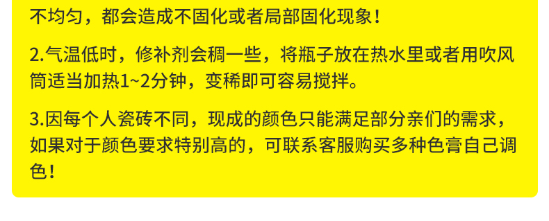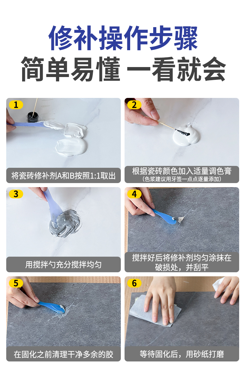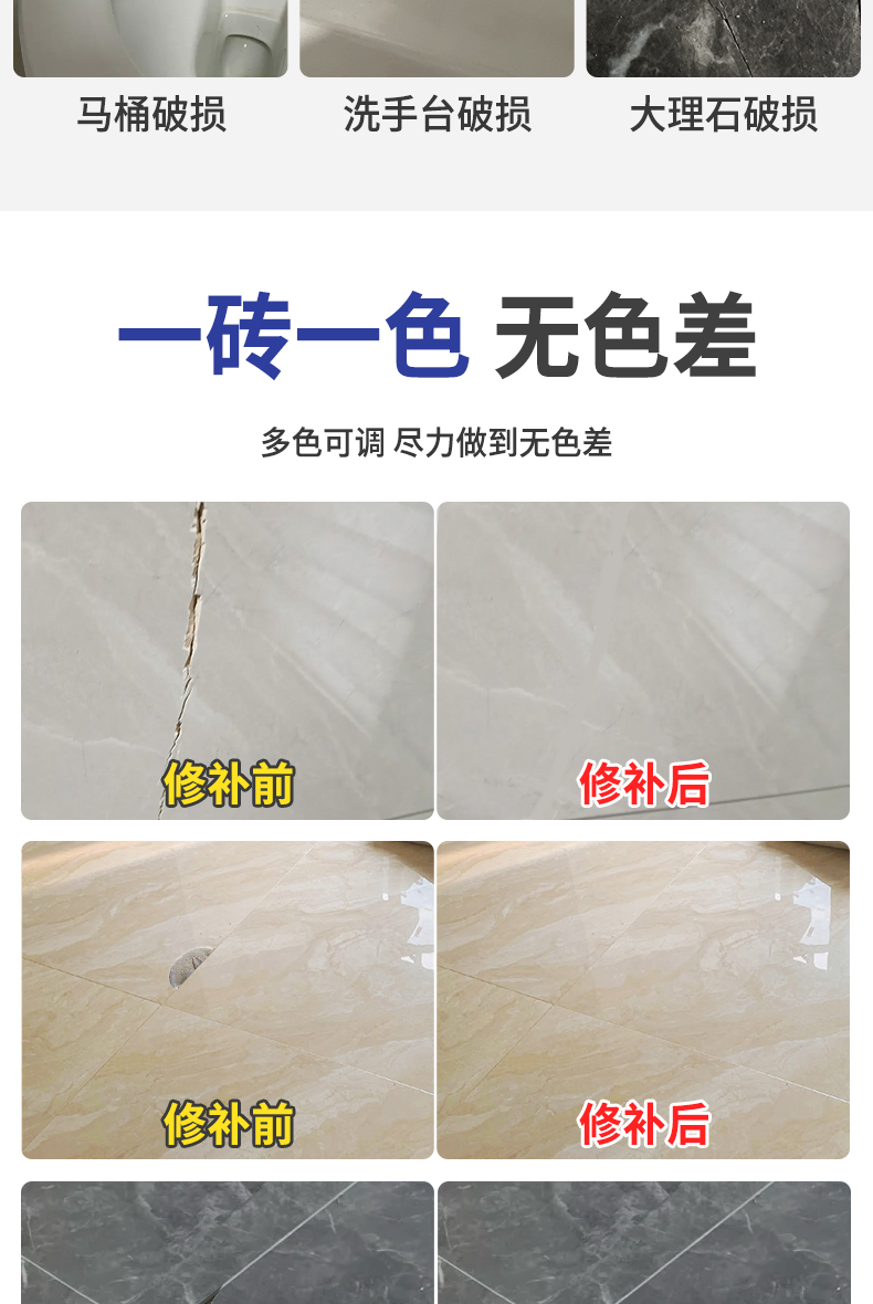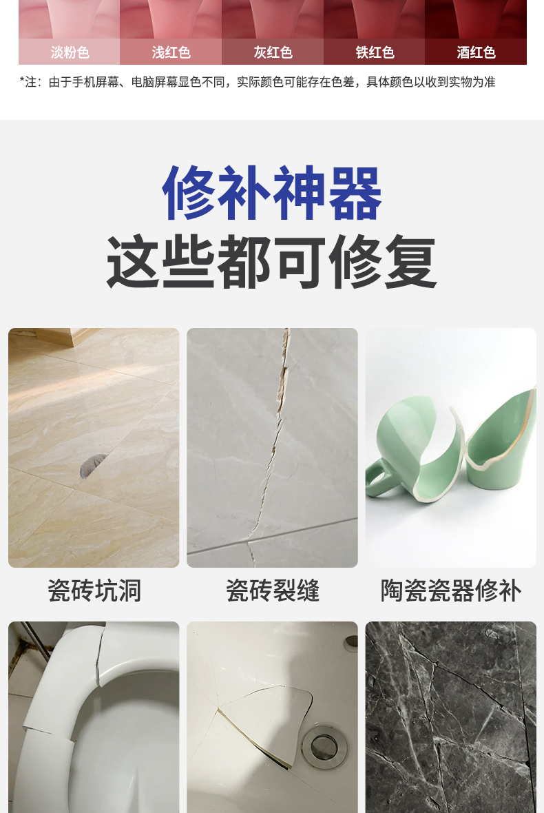 세라믹 타일 수리 에이전트 유약 페이스트 조정 가능한 컬러 움푹 들어간 바닥 타일은 못생긴 세라믹 구멍 타일 수리 호닝 비문을 숨기기 위해 손상되었습니다.
