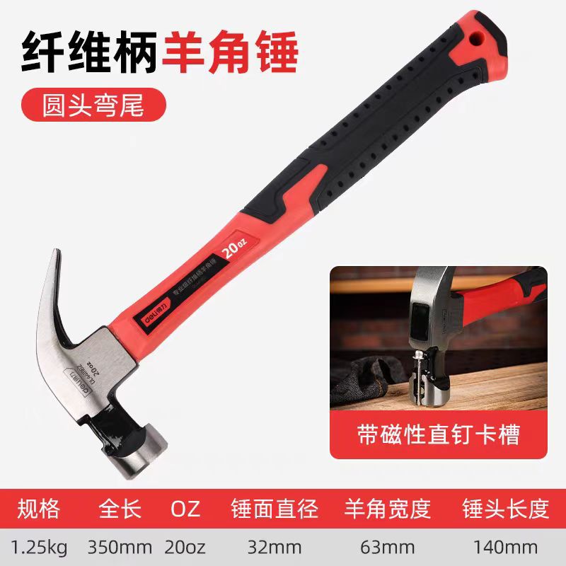 델리툴스 섬유섬유 손잡이 양각 망치 고탄소강 망치머리 망치 목공 장식 가정용 전문가급 손잡이