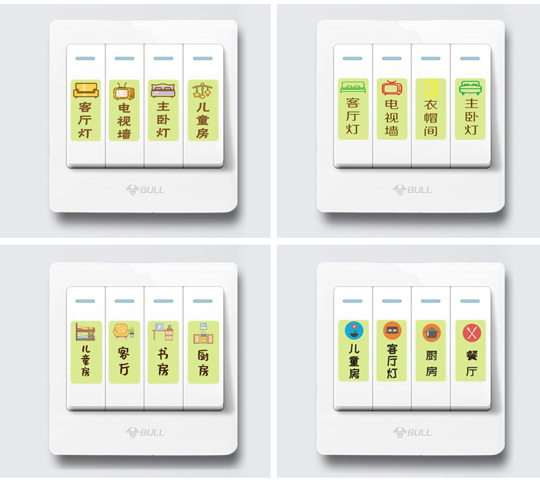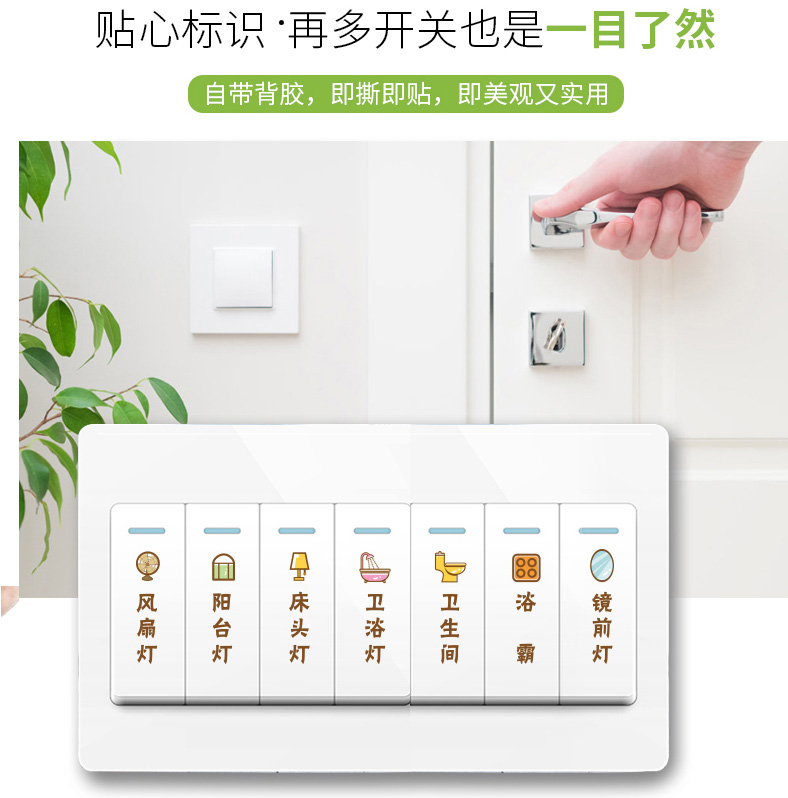 전기 상자 스위치 로고 스티커 자체 접착 소켓 패널 장식 발광 벽 스티커 스티커 총 게이트 표시기 스티커 호닝 비문