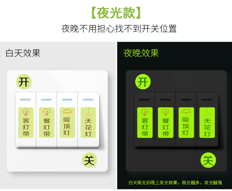전기 상자 스위치 로고 스티커 자체 접착 소켓 패널 장식 발광 벽 스티커 스티커 총 게이트 표시기 스티커 호닝 비문스토어 가기