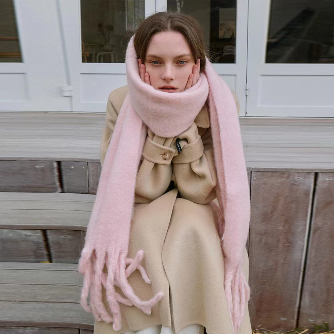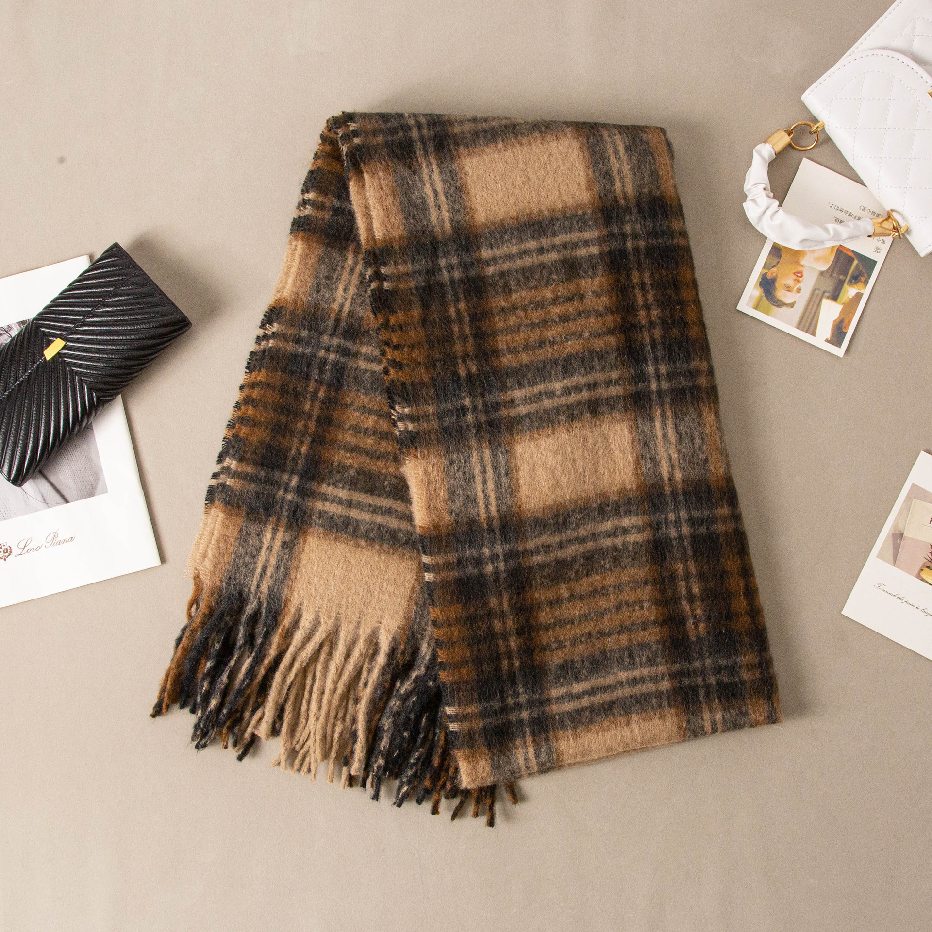 Maillard 스타일 다크 브라운 캐시미어 스카프 여성의 겨울 하이 엔드 술 모헤어 두꺼운 스카프 학생 새로운스토어 가기