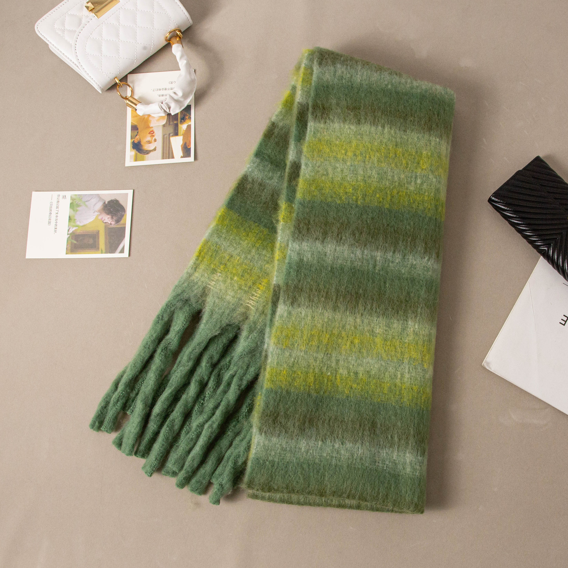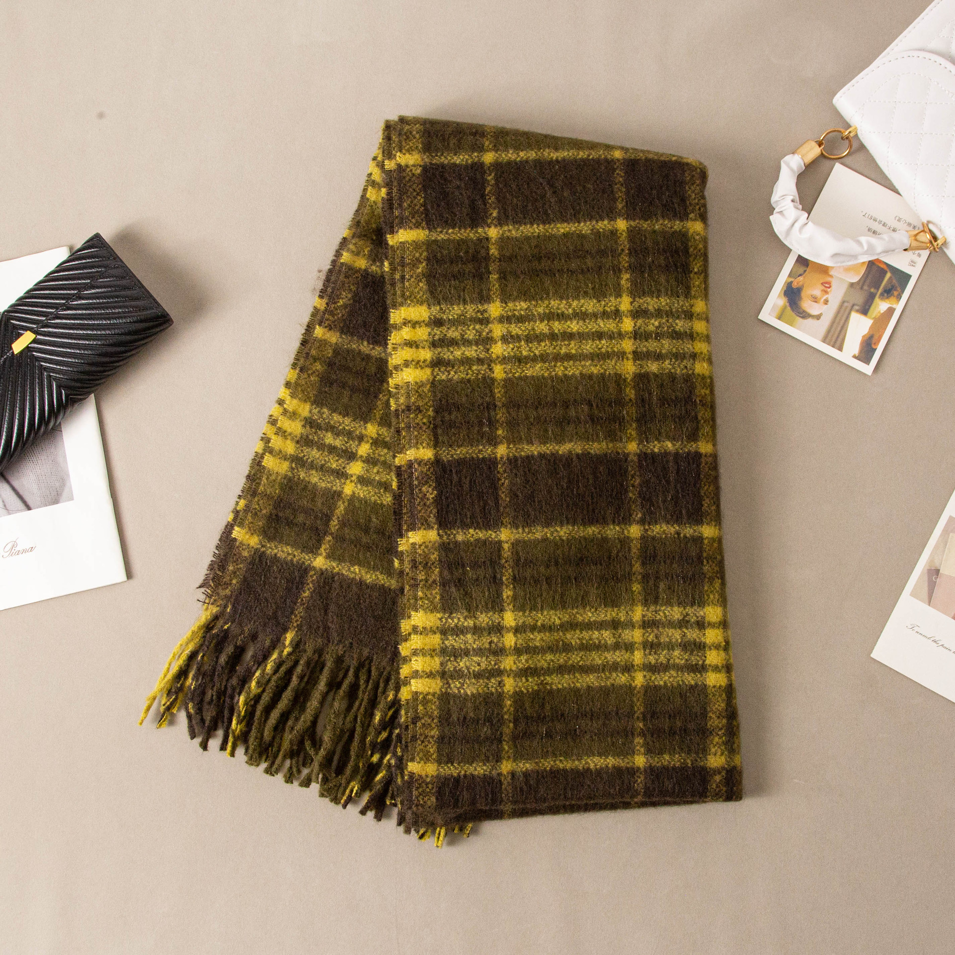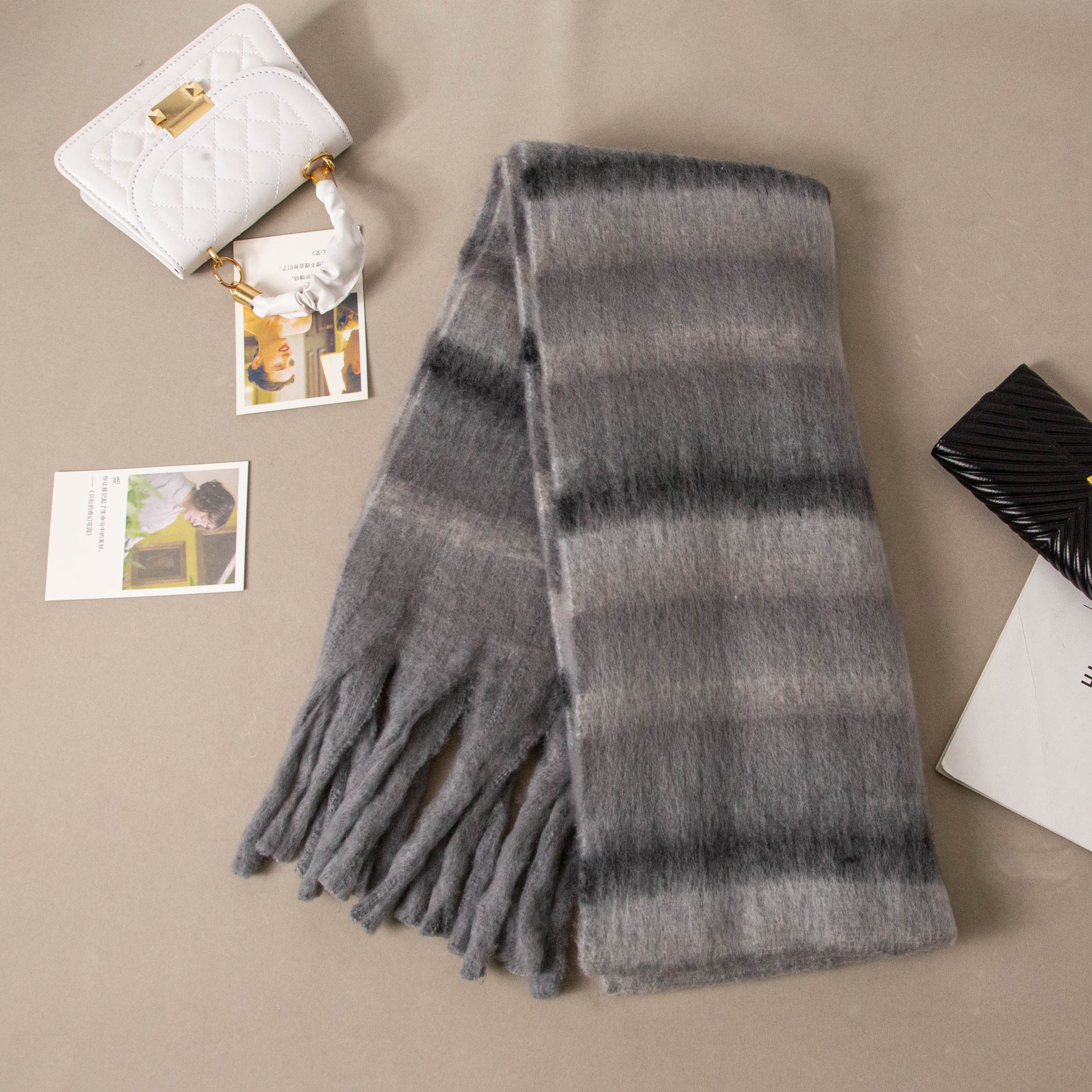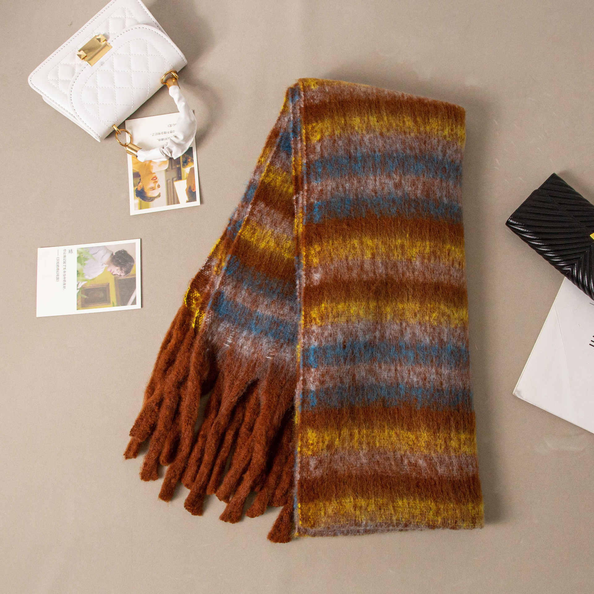 Maillard 스타일 다크 브라운 캐시미어 스카프 여성의 겨울 하이 엔드 술 모헤어 두꺼운 스카프 학생 새로운