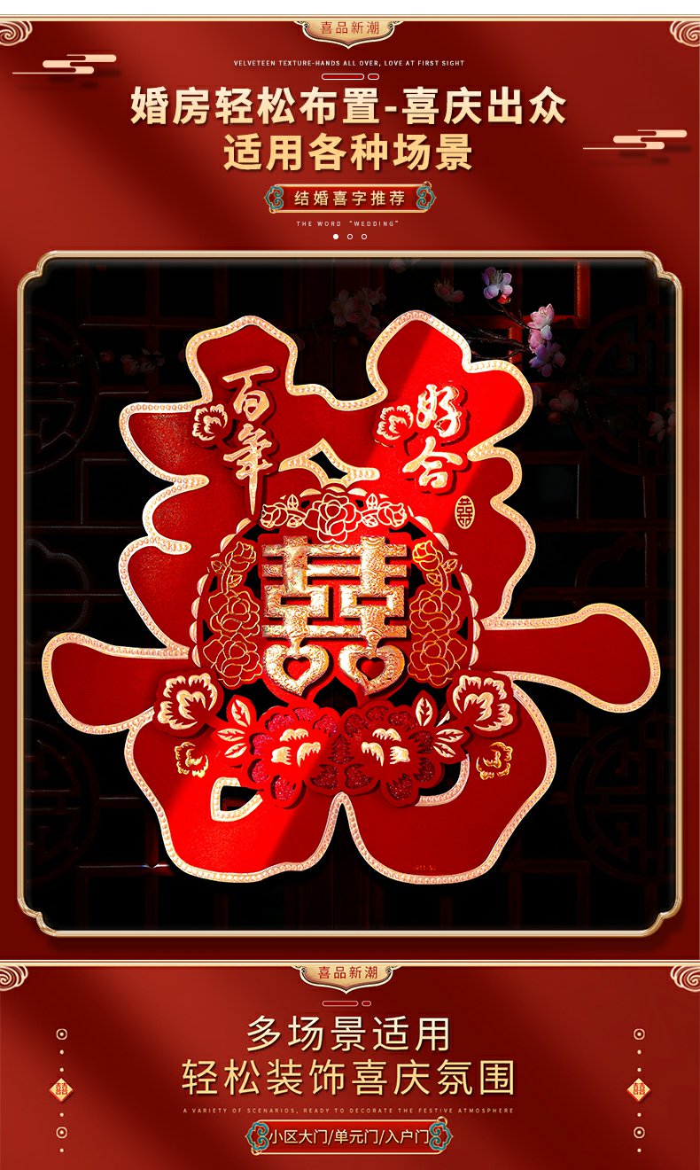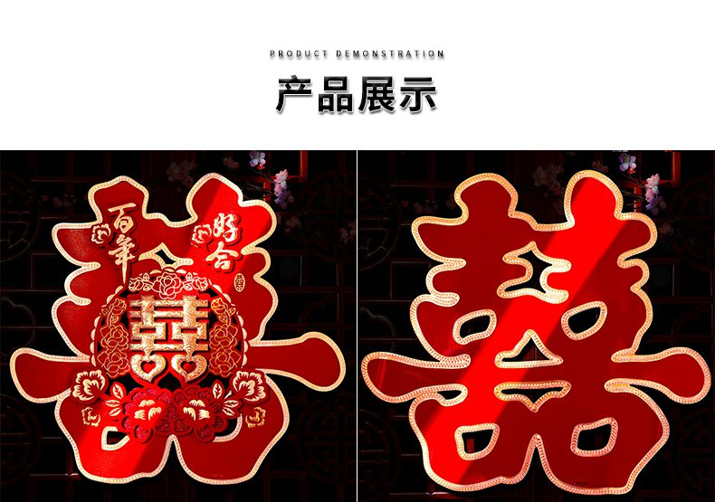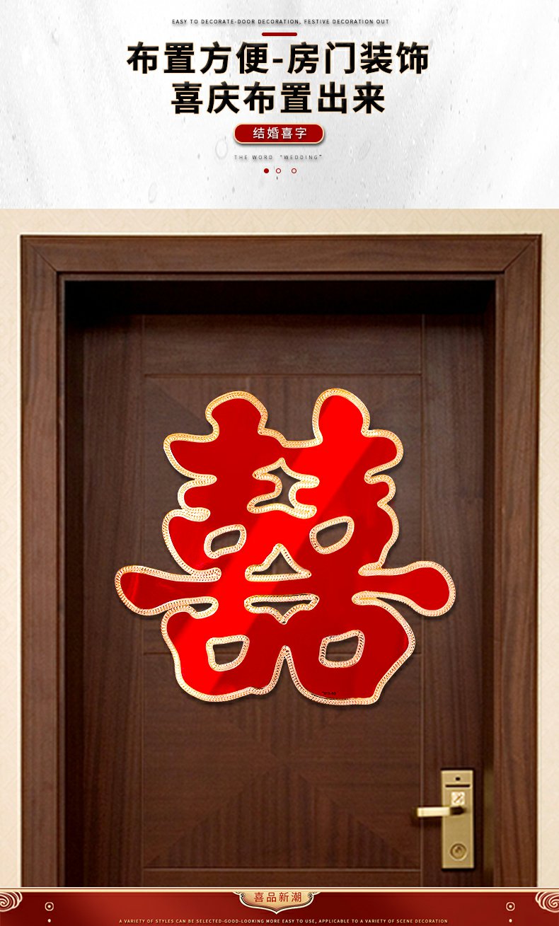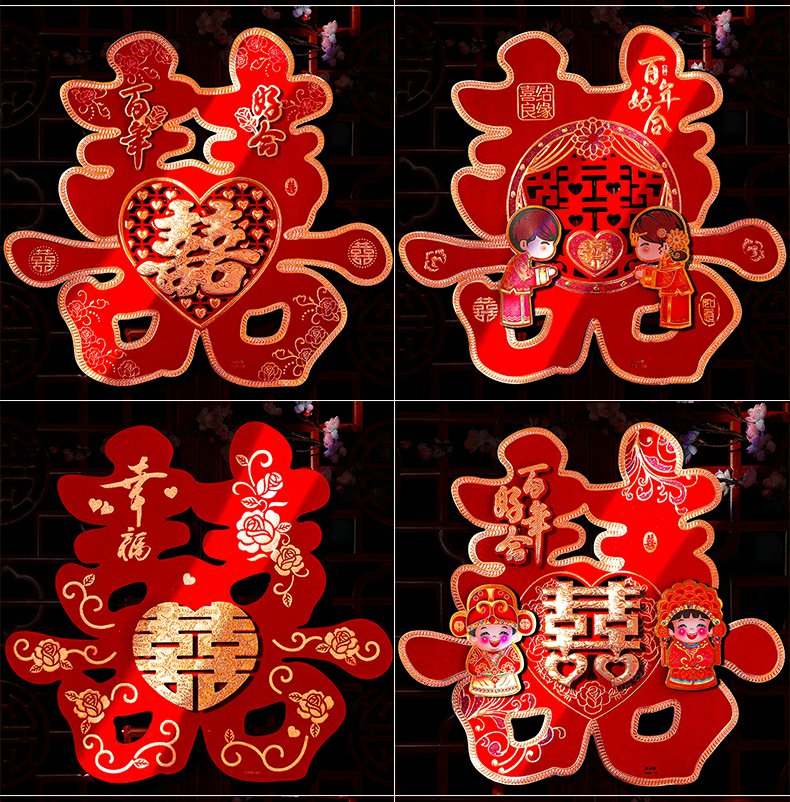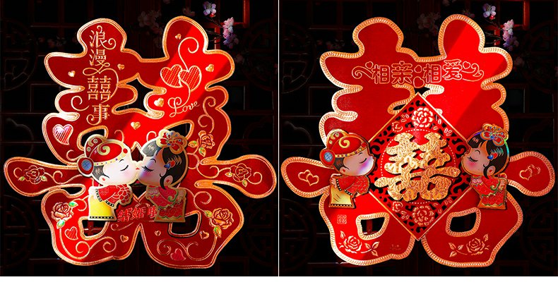 해피 워드 스티커 문 해피 워드 웨딩 창 웨딩 룸 장식 문 해피 거실 큰 웨딩 용품 Heng Ming스토어 가기