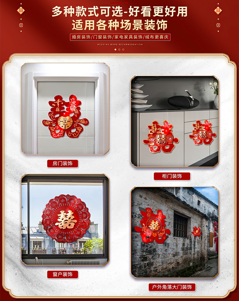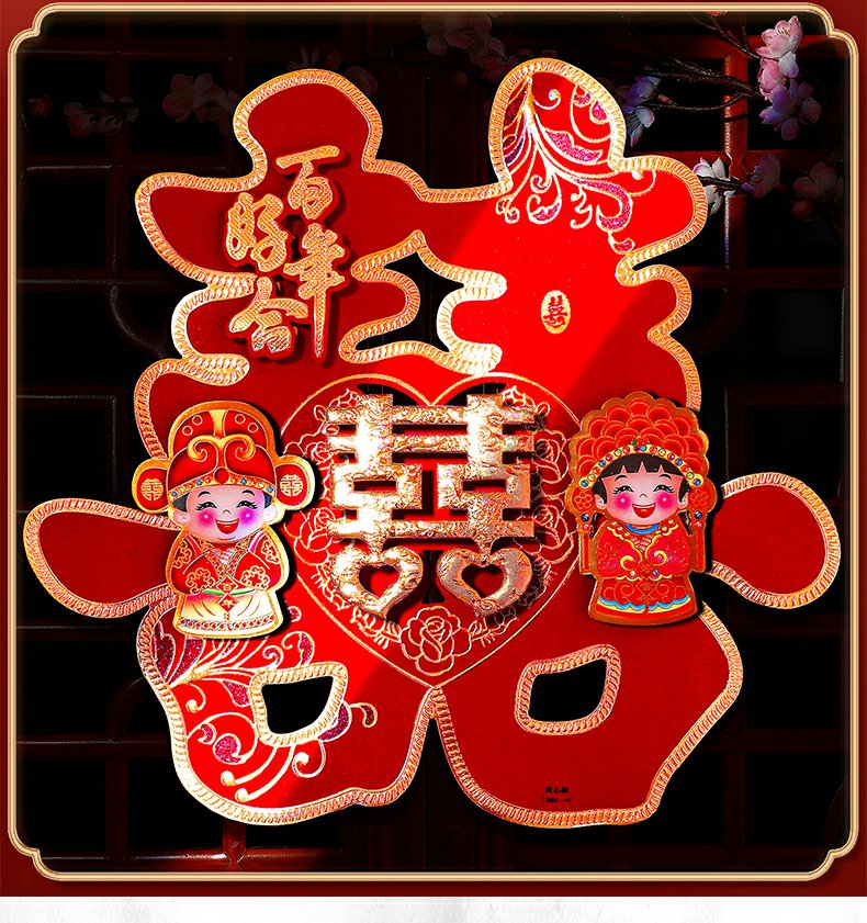 해피 워드 스티커 문 해피 워드 웨딩 창 웨딩 룸 장식 문 해피 거실 큰 웨딩 용품 Heng Ming