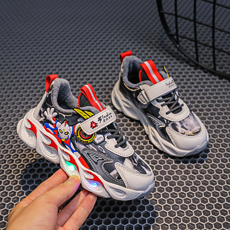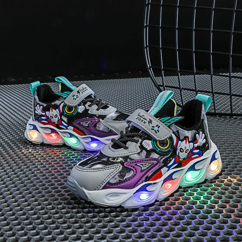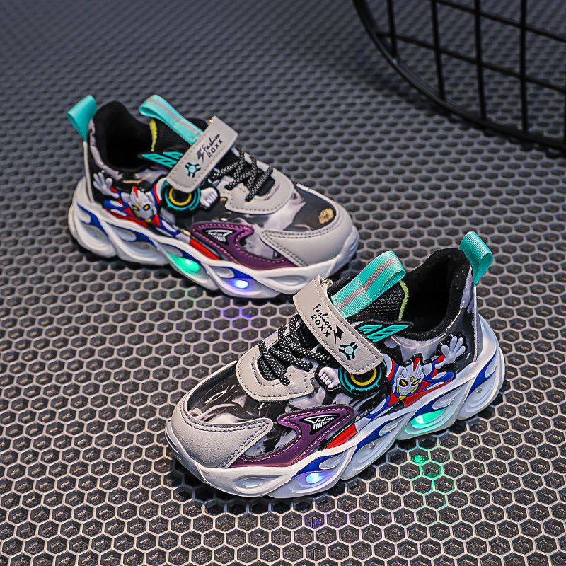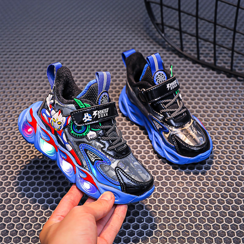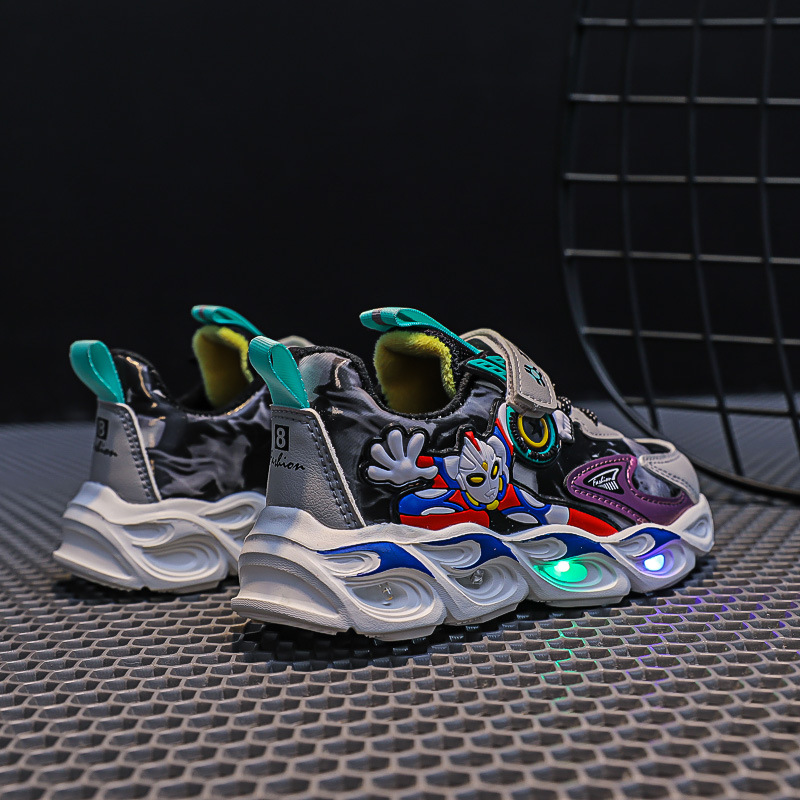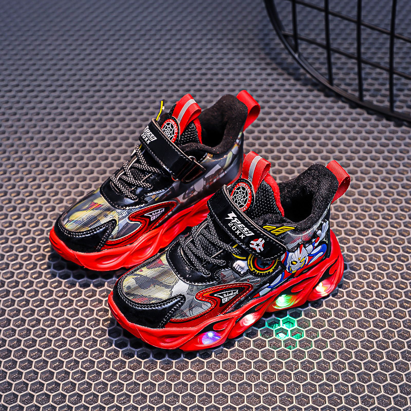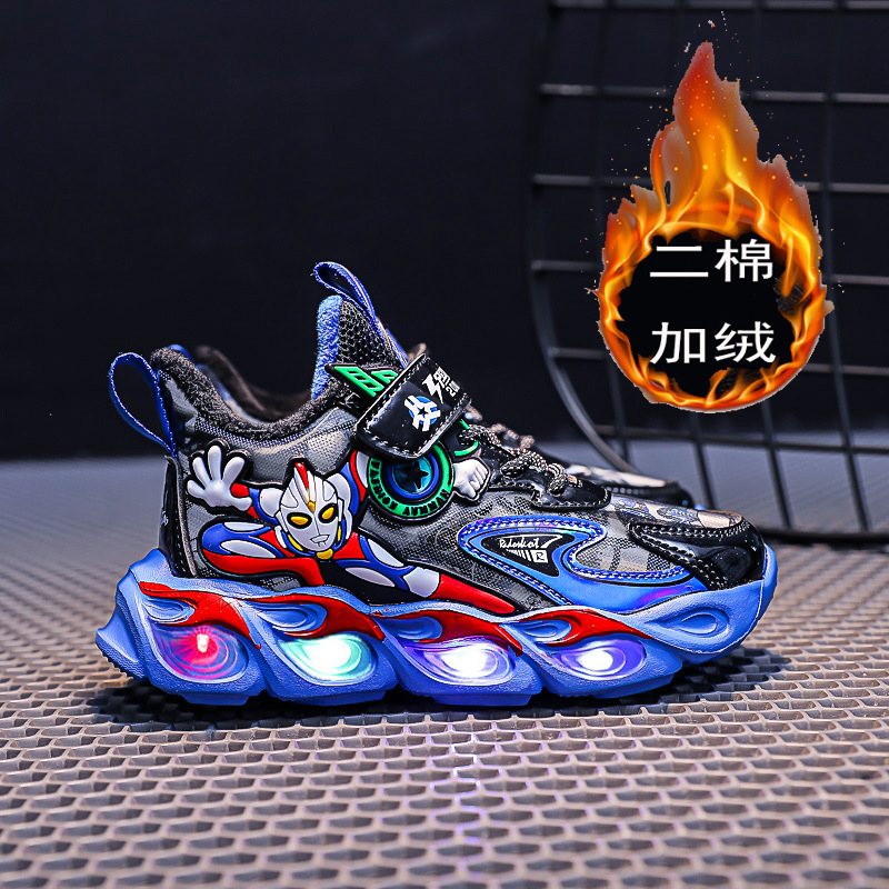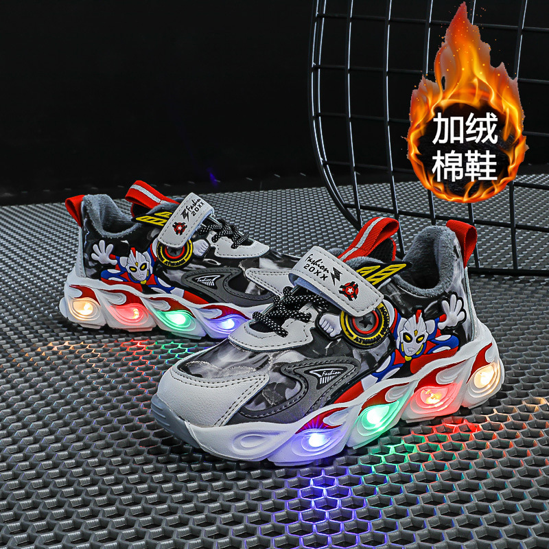 소년과 소녀를위한 대외 무역 LED 어린이 깜박이는 조명 운동화 가을과 겨울 만화 새로운 어린이 신발 경량 캐주얼 운동화