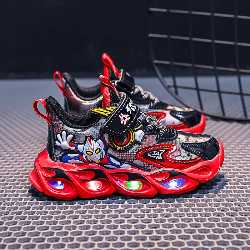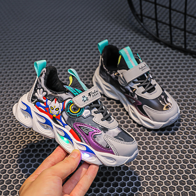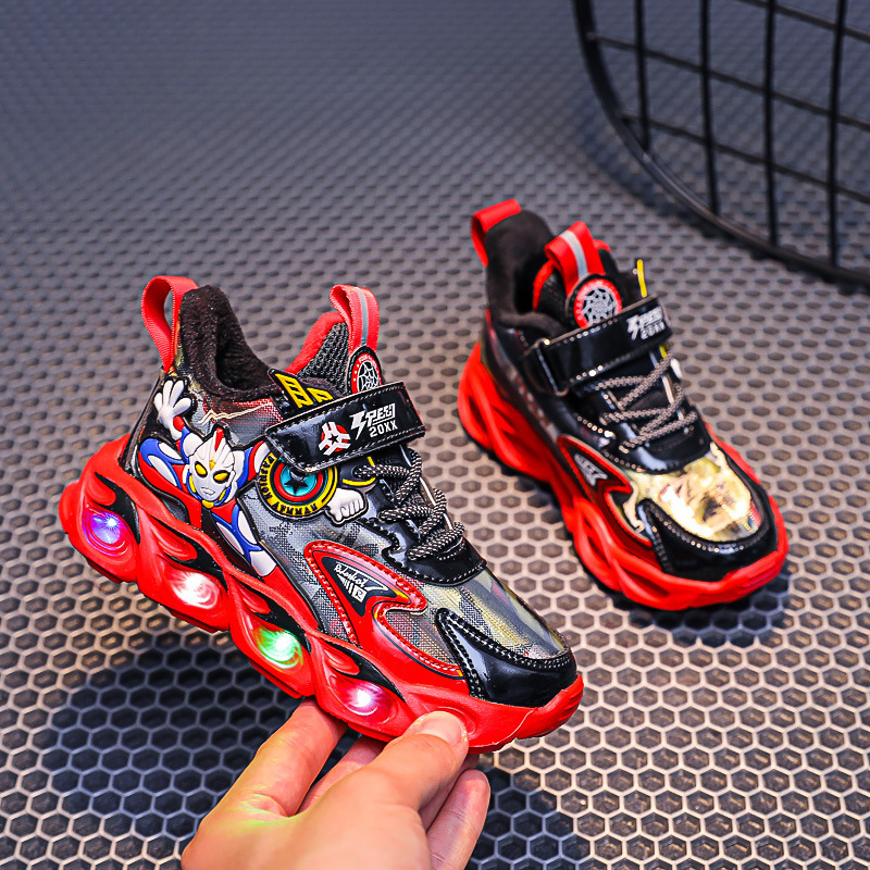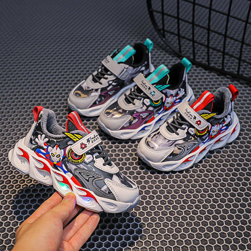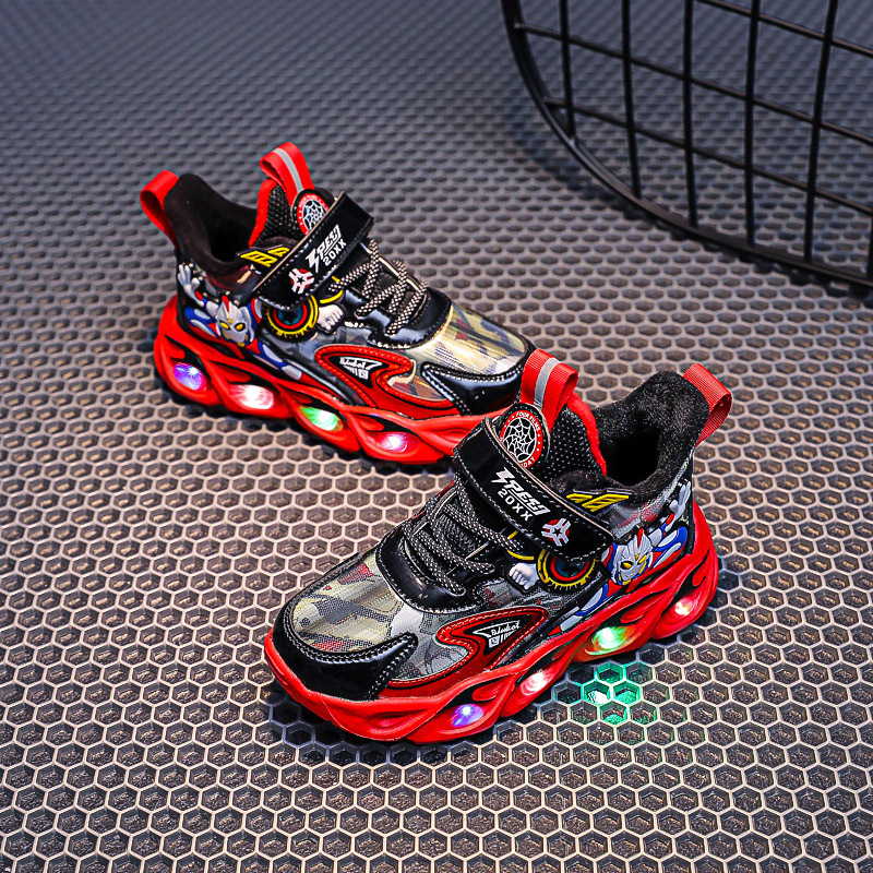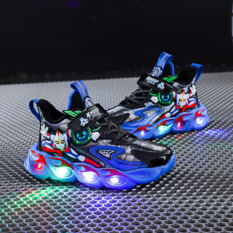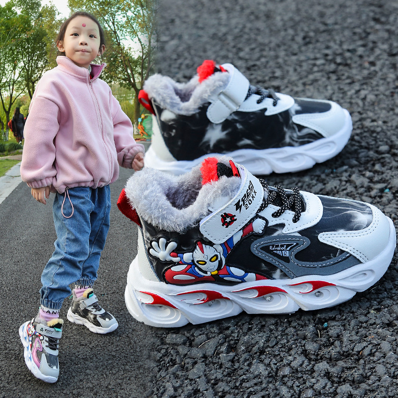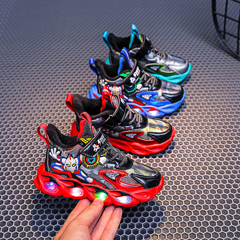 소년과 소녀를위한 대외 무역 LED 어린이 깜박이는 조명 운동화 가을과 겨울 만화 새로운 어린이 신발 경량 캐주얼 운동화